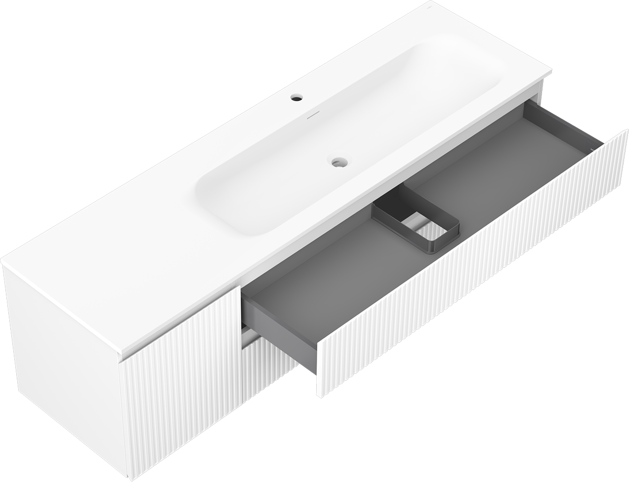 Mexen Rivel vonios spintelė 160 cm su dešine Vela kriaukle, 2S, 1D, gofruota, balta matinė - 91A23-16047-3-BBFFF01-W23P01