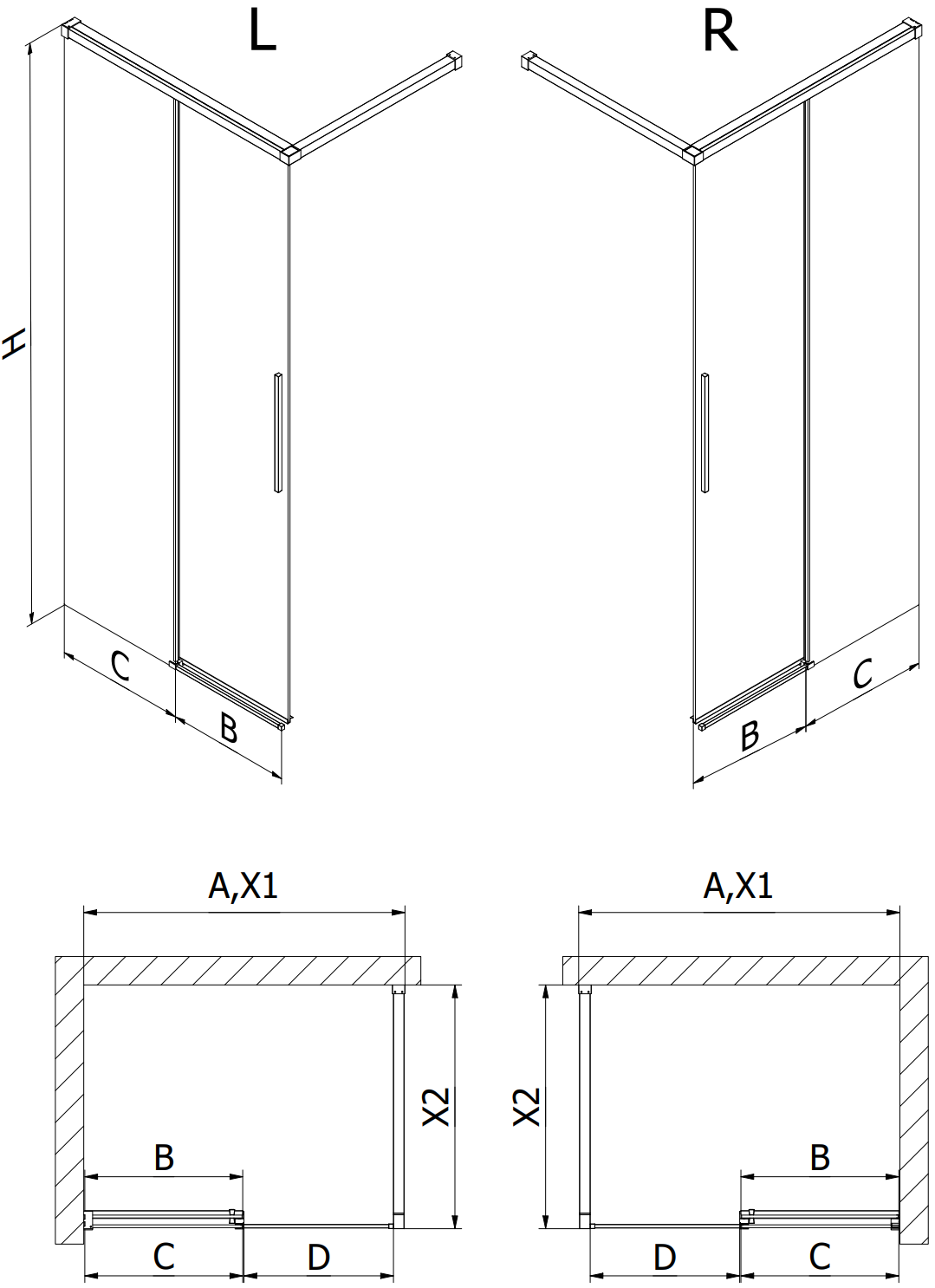 Dėl universalaus tvirtinimo sistemos, dušo durys gali būti sumontuotos dešinėje arba kairėje pusėje, atsižvelgiant į poreikius. Tai leidžia lengvai suprojektuoti dušą, pritaikytą vonios kambario erdvei.