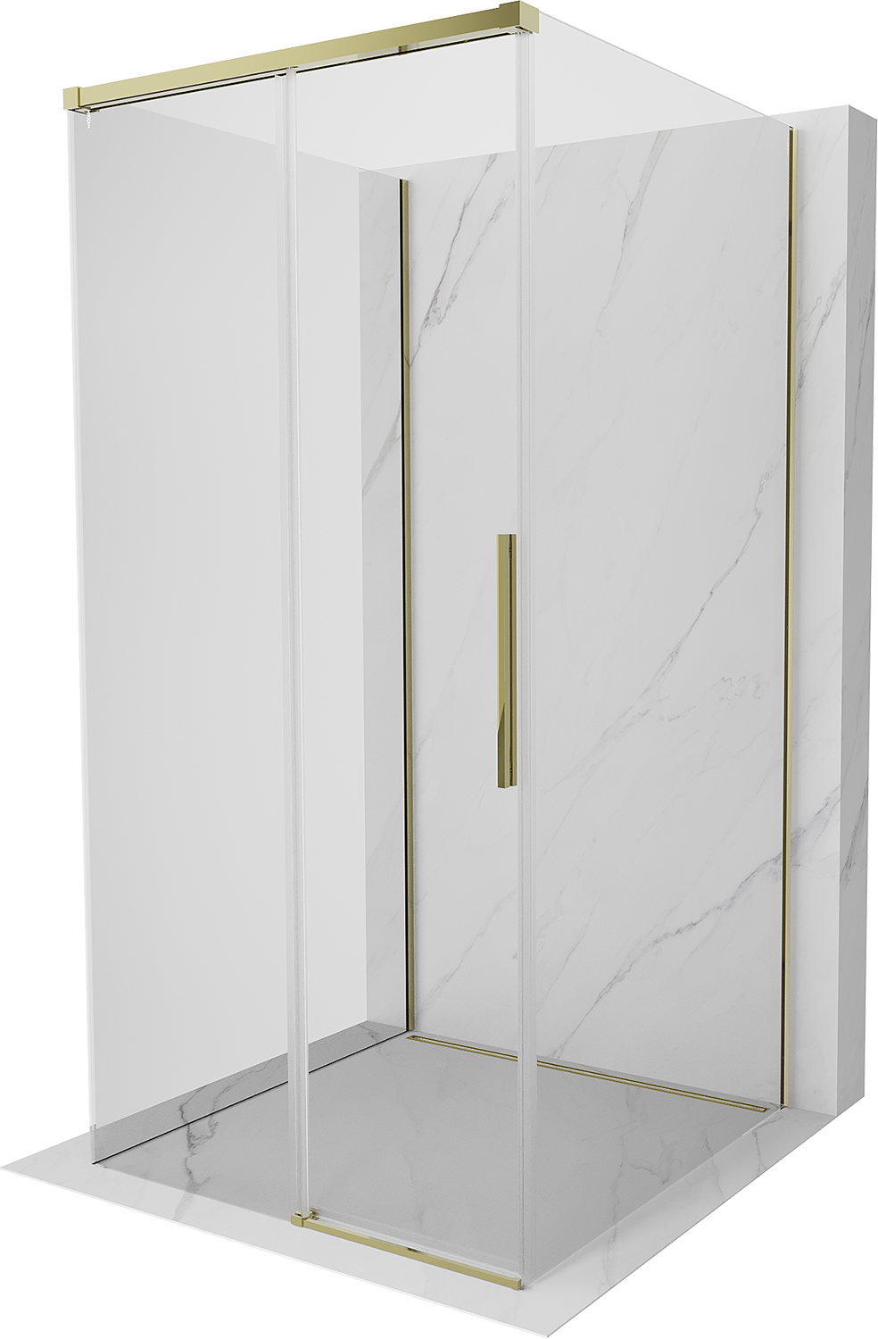 Mexen Rox-3S 3 sienelių stumdomoji dušo kabina 110 x 110 cm, skaidri, auksinė - 8C2-110-110-50-00-3S
