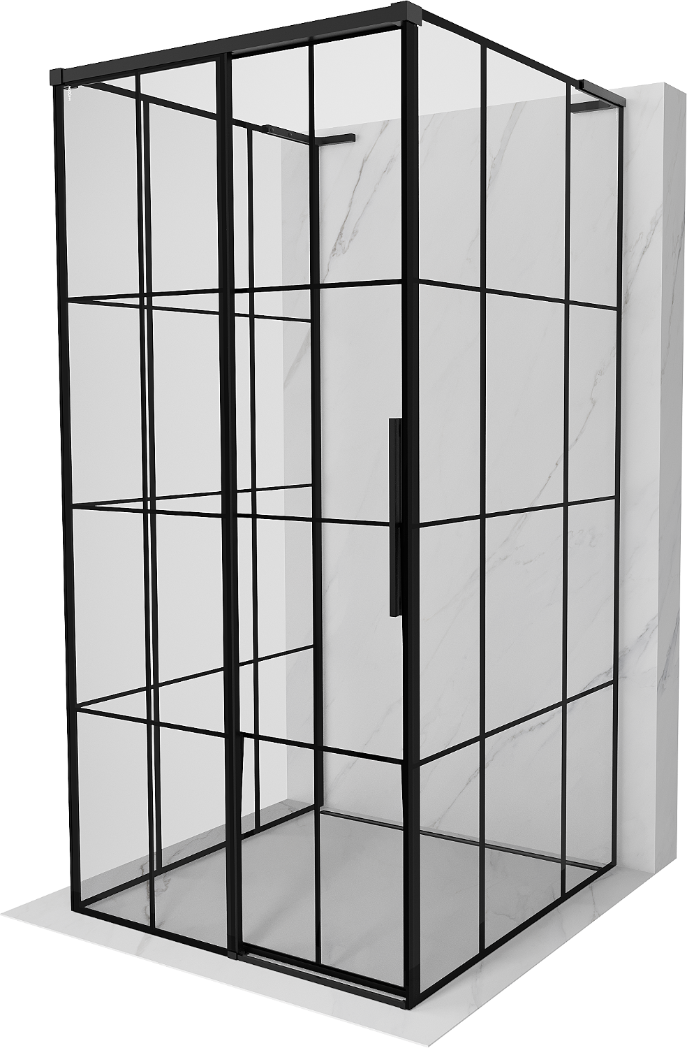 Mexen Rox-3S L trijų sienelių dušo kabina 100 x 100 cm, kairinis stumdomų durų, juoda su grotelėmis, juoda