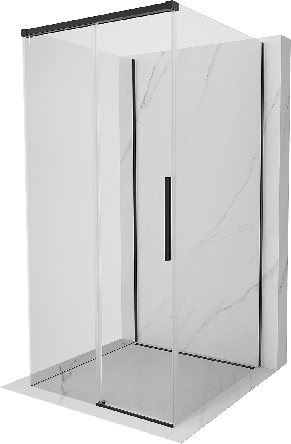 Mexen Rox-3S trijų sienelių stumdomas dušo kabina 90 x 90 cm, permatomas, juodas - 8C2-090-090-70-00-3S