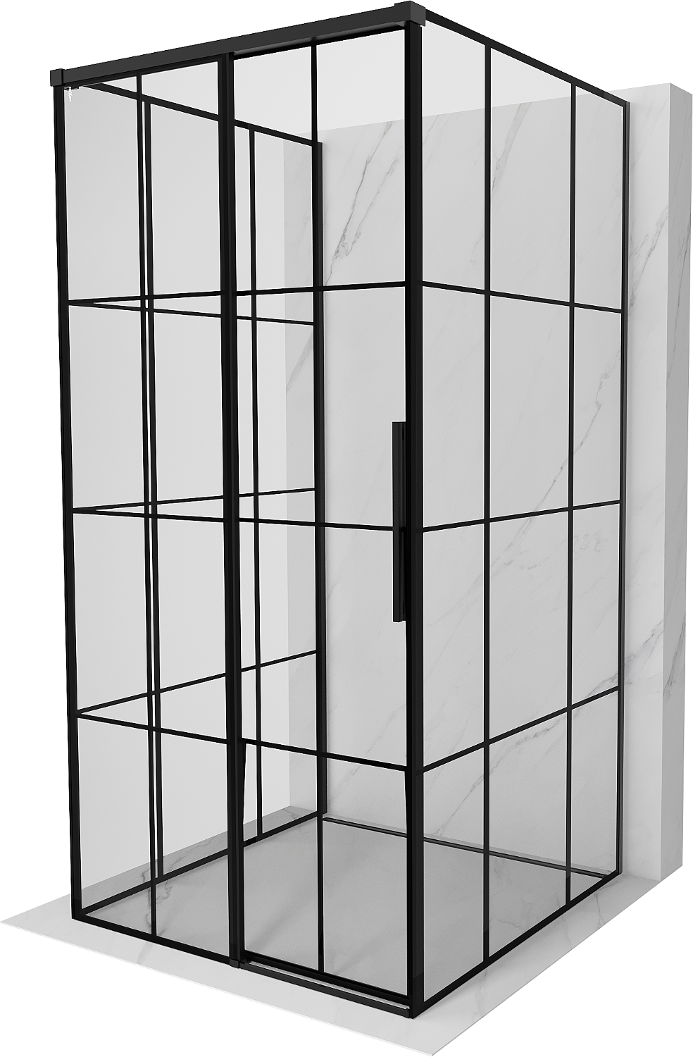 Dydis: 90x90 cm (kairinės durys 90 cm, sienelės 90 cm)