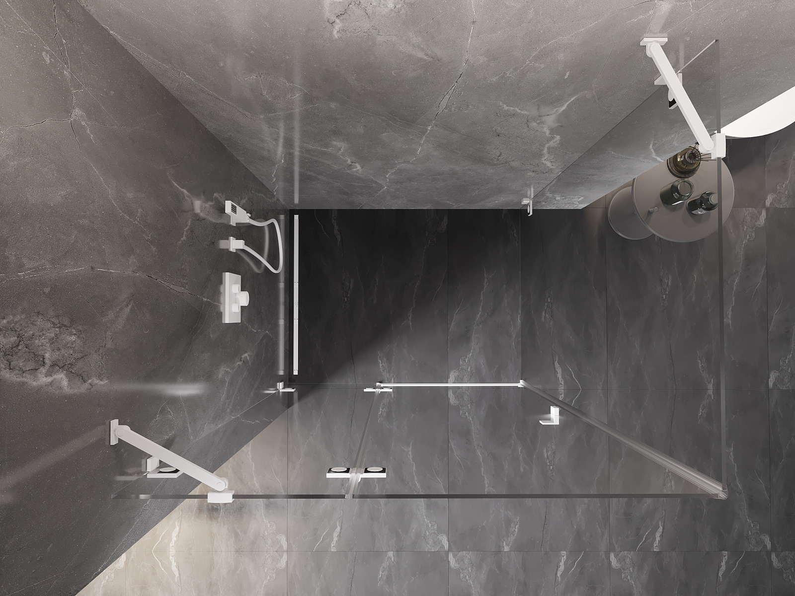 Spaustukai ir vyriai pagaminti iš labai patvaraus žalvario, papildomai sukuriantys lygią stiklo plokštumą. Tai puikus pasirinkimas, jungiantis eleganciją, patvarumą ir šiuolaikinį dizainą. Tokie sprendimai prideda dušo estetikai ir tuo pačiu palengvina švaros palaikymą.