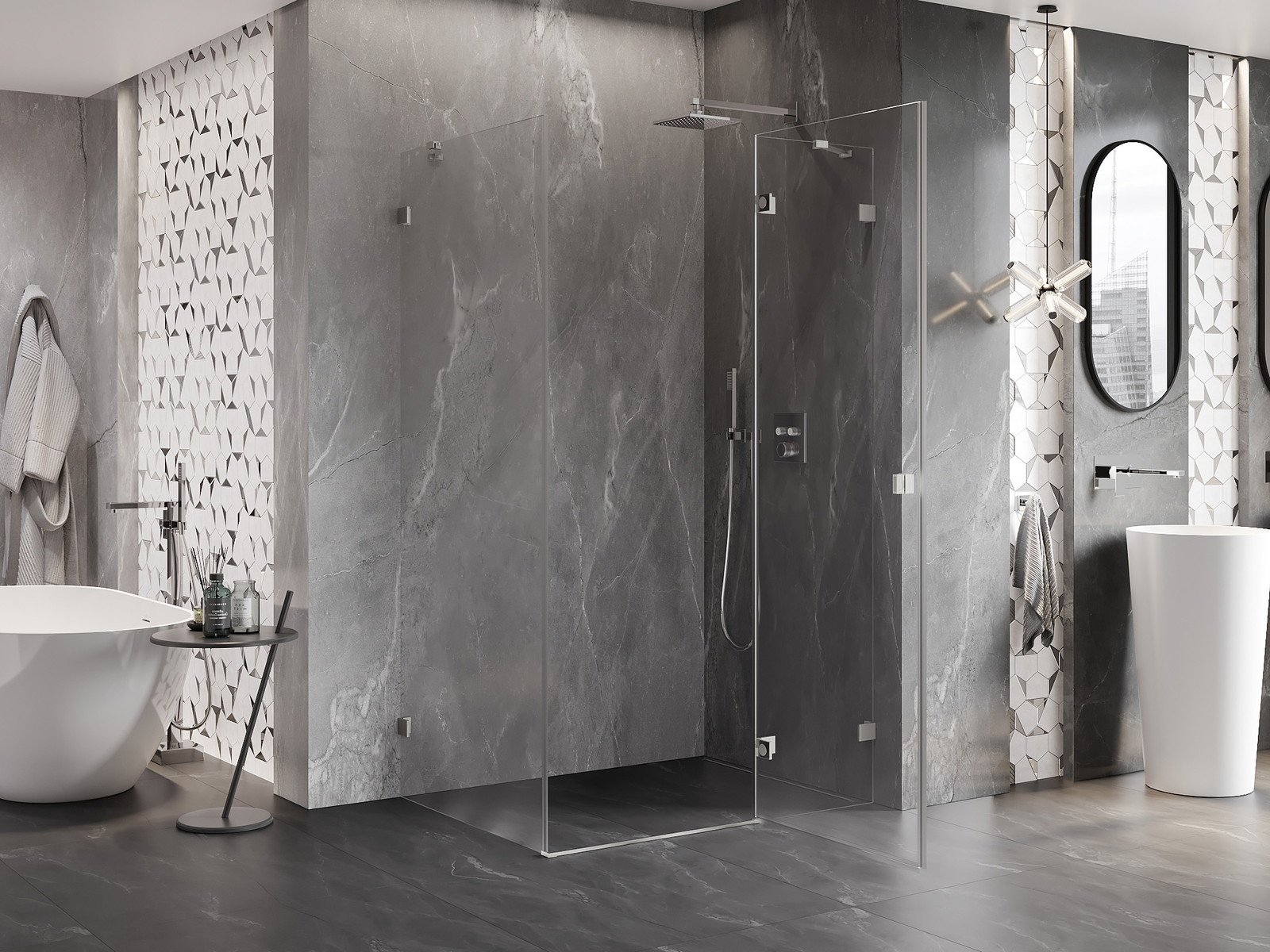 Spaustukai ir vyriai pagaminti iš labai patvaraus žalvario, papildomai sukuriantys lygią stiklo plokštumą. Tai puikus pasirinkimas, jungiantis eleganciją, patvarumą ir šiuolaikinį dizainą. Tokie sprendimai prideda dušo estetikai ir tuo pačiu palengvina švaros palaikymą.