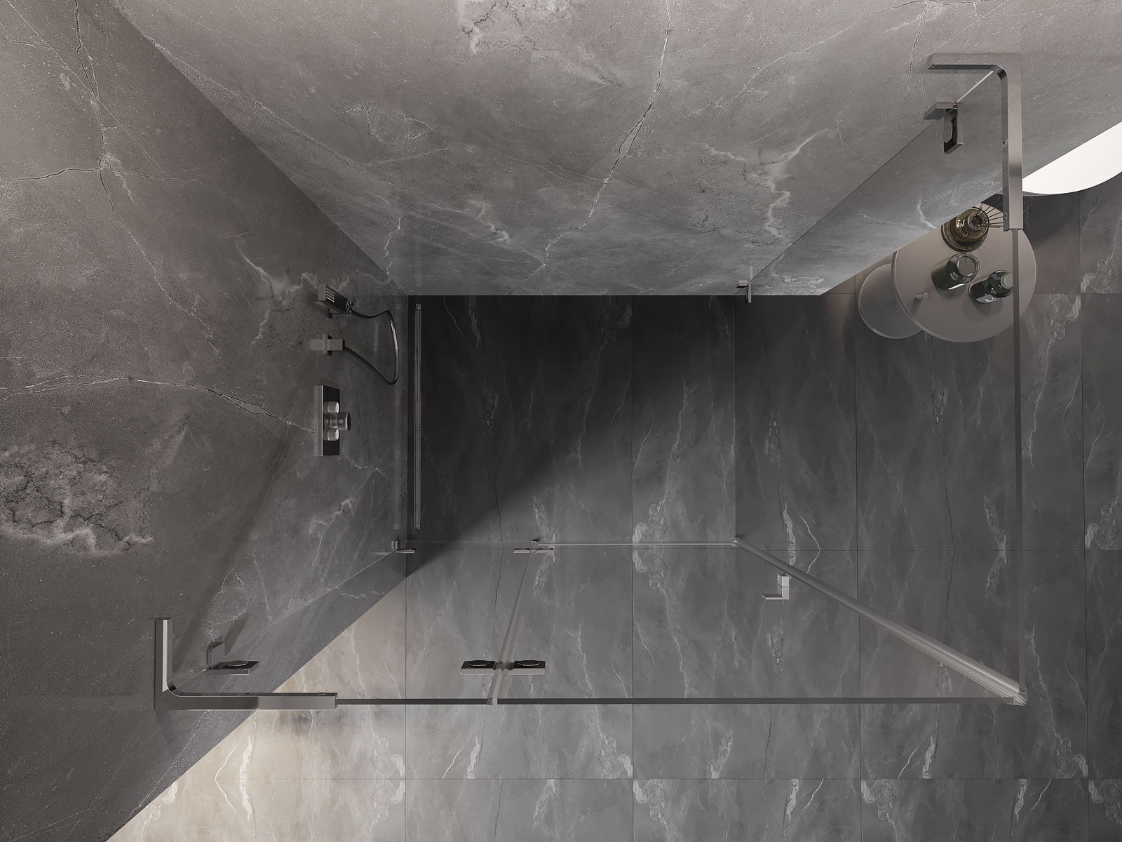 Spaustukai ir vyriai pagaminti iš labai patvaraus žalvario, papildomai sukuriantys lygią stiklo plokštumą. Tai puikus pasirinkimas, jungiantis eleganciją, patvarumą ir šiuolaikinį dizainą. Tokie sprendimai prideda dušo estetikai ir tuo pačiu palengvina švaros palaikymą.