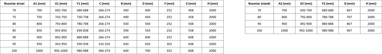 Dydis: 80x90 cm (kairiosios durys 80 cm, sienelė 90 cm)