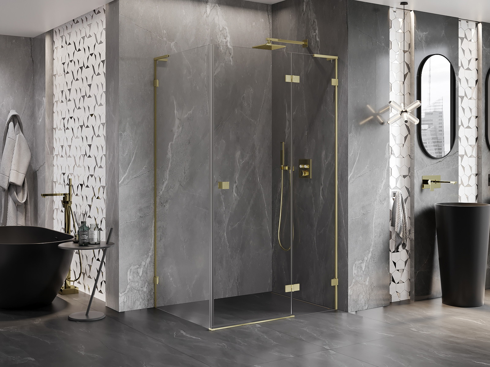 Mexen Lunar L yra elegantiška dušo kabina, kurios matmenys yra 85x90 cm, siūlanti modernų dizainą ir funkcionalumą. Kabina skirta montavimui dešinėje pusėje su atveriamomis durimis, kas palengvina jos naudojimą. Pagaminta iš 8 mm storio grūdinto stiklo, užtikrina saugumą ir ilgaamžiškumą. Permatomas stiklas su valymo technologija ir šlifuotu auksiniu apdaila suteikia interjerui prabangos pojūtį. Papildomi tarpikliai ir pločio reguliavimo galimybė užtikrina puikų sandarumą ir pritaikymą įvairioms instaliacijoms.