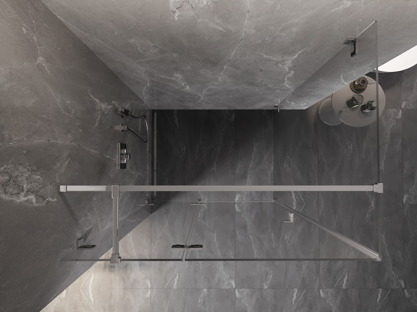 Spaustukai ir vyriai pagaminti iš labai patvaraus žalvario, papildomai sukuriantys lygią stiklo plokštumą. Tai puikus pasirinkimas, jungiantis eleganciją, patvarumą ir šiuolaikinį dizainą. Tokie sprendimai prideda dušo estetikai ir tuo pačiu palengvina švaros palaikymą.