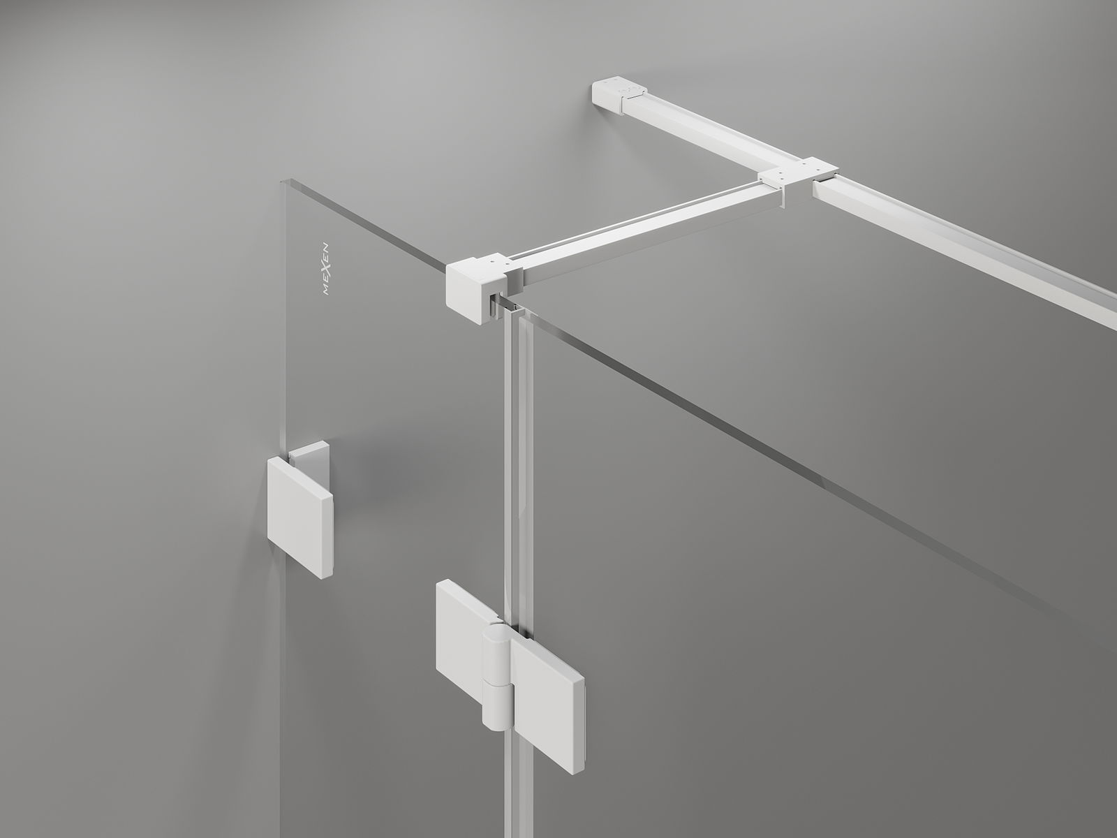 Spaustukai ir vyriai pagaminti iš labai patvaraus žalvario, papildomai sukuriantys lygią stiklo plokštumą. Tai puikus pasirinkimas, jungiantis eleganciją, patvarumą ir šiuolaikinį dizainą. Tokie sprendimai prideda dušo estetikai ir tuo pačiu palengvina švaros palaikymą.