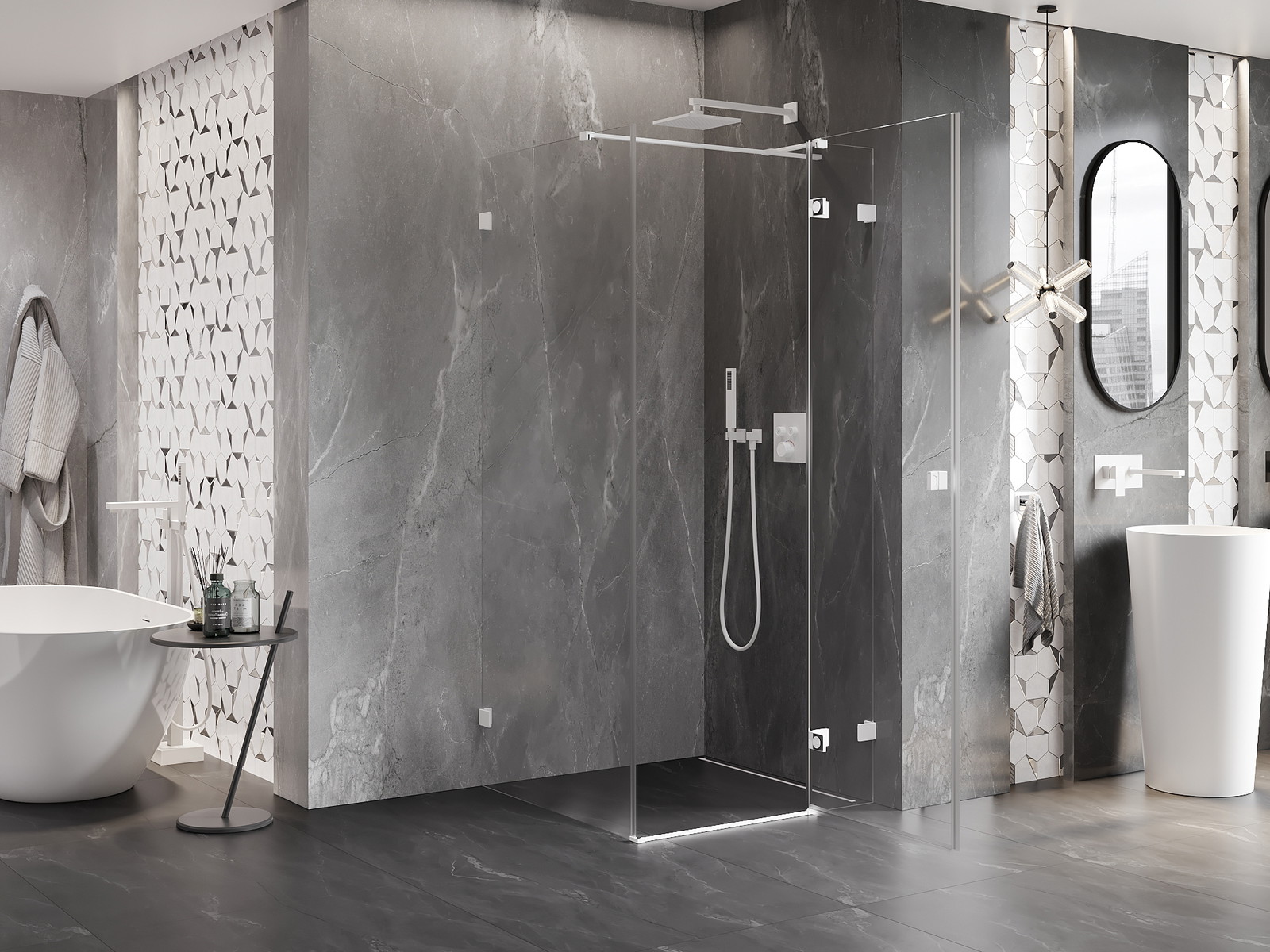 Produktą, atsižvelgiant į poreikius, galima sumontuoti tiek ant dušo padėklo, tiek tiesiogiai ant grindų. Universalus montavimo būdas leidžia pritaikyti produktą įvairių tipų vonios kambariams ir erdvės konfigūracijoms.