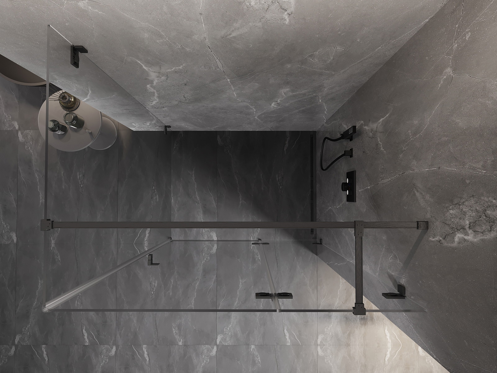 Spaustukai ir vyriai pagaminti iš labai patvaraus žalvario, papildomai sukuriantys lygią stiklo plokštumą. Tai puikus pasirinkimas, jungiantis eleganciją, patvarumą ir šiuolaikinį dizainą. Tokie sprendimai prideda dušo estetikai ir tuo pačiu palengvina švaros palaikymą.