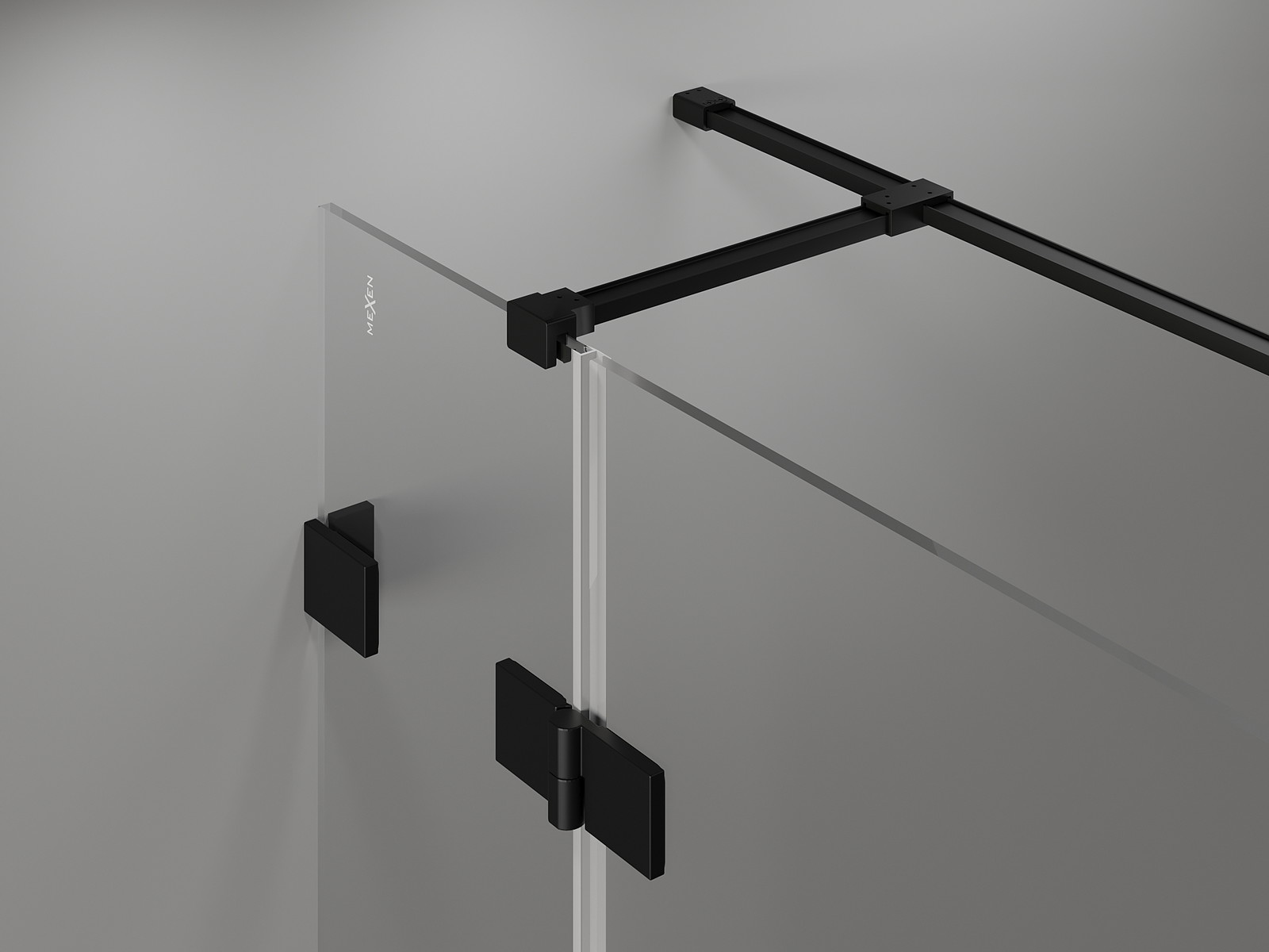 Spaustukai ir vyriai pagaminti iš labai patvaraus žalvario, papildomai sukuriantys lygią stiklo plokštumą. Tai puikus pasirinkimas, jungiantis eleganciją, patvarumą ir šiuolaikinį dizainą. Tokie sprendimai prideda dušo estetikai ir tuo pačiu palengvina švaros palaikymą.