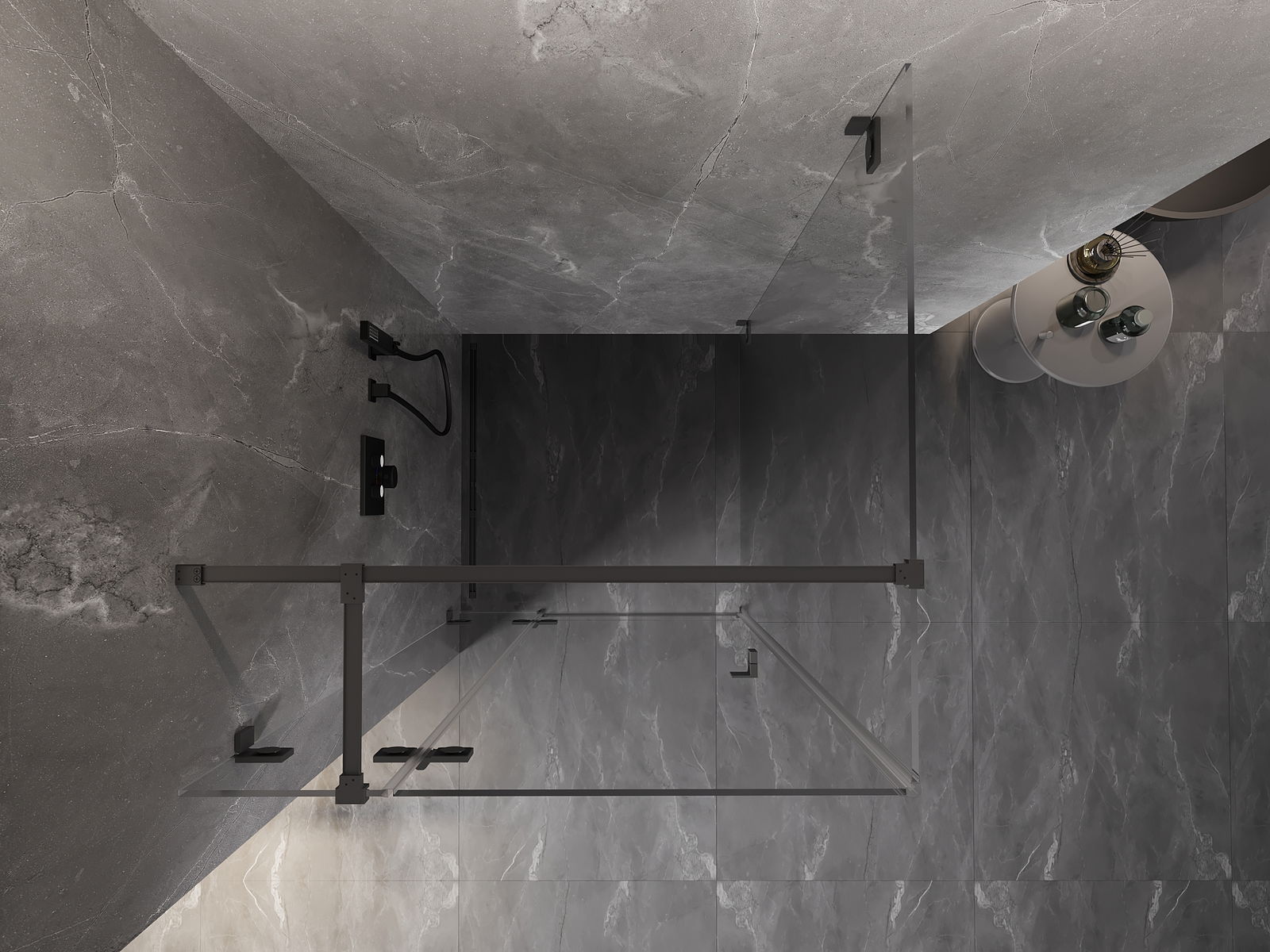 Spaustukai ir vyriai pagaminti iš labai patvaraus žalvario, papildomai sukuriantys lygią stiklo plokštumą. Tai puikus pasirinkimas, jungiantis eleganciją, patvarumą ir šiuolaikinį dizainą. Tokie sprendimai prideda dušo estetikai ir tuo pačiu palengvina švaros palaikymą.
