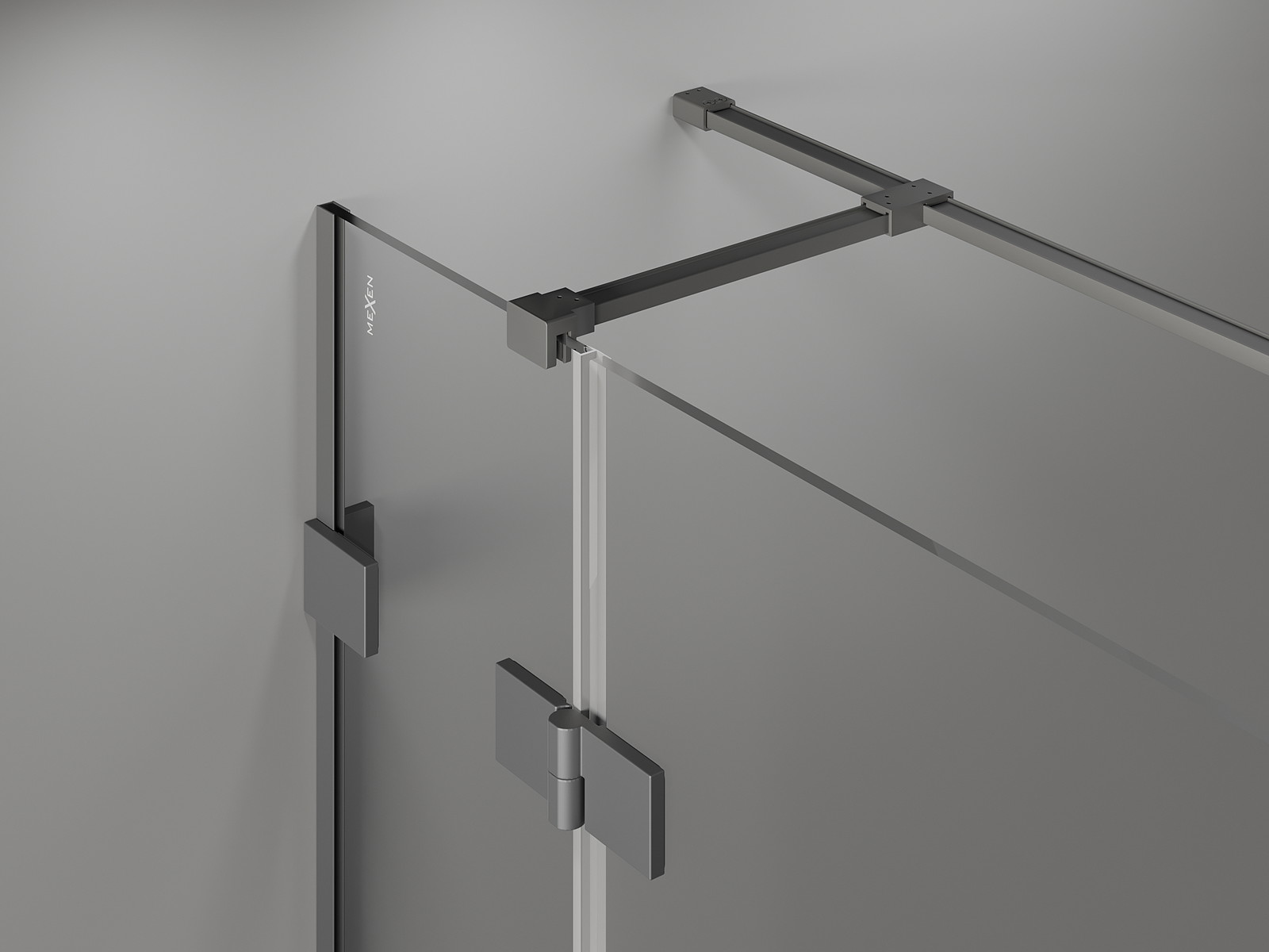 Spaustukai ir vyriai pagaminti iš labai patvaraus žalvario, papildomai sukuriantys lygią stiklo plokštumą. Tai puikus pasirinkimas, jungiantis eleganciją, patvarumą ir šiuolaikinį dizainą. Tokie sprendimai prideda dušo estetikai ir tuo pačiu palengvina švaros palaikymą.