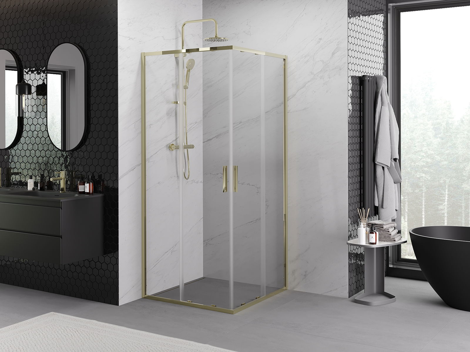 Produktą, atsižvelgiant į poreikius, galima sumontuoti tiek ant dušo padėklo, tiek tiesiogiai ant grindų. Universalus montavimo būdas leidžia pritaikyti produktą įvairių tipų vonios kambariams ir erdvės konfigūracijoms.