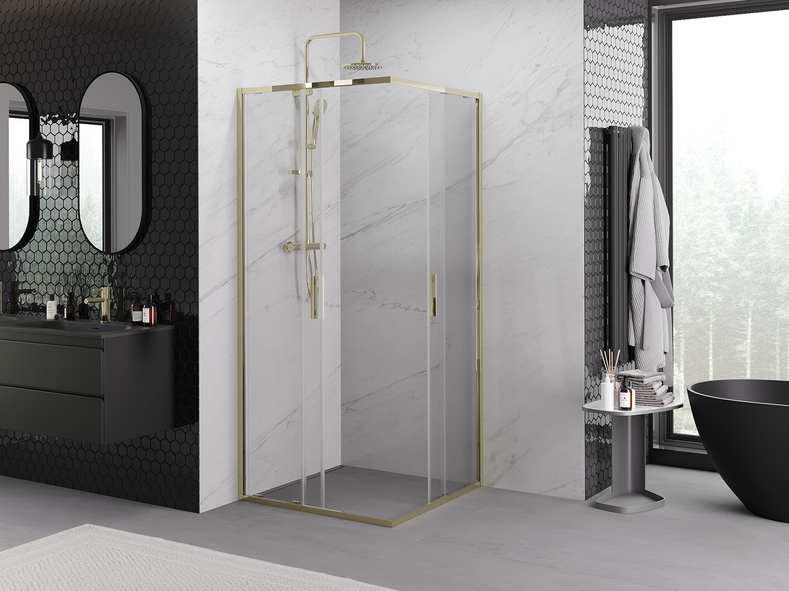 Mexen Exo keturkampis slankiojantis dušo kabinos komplektas 95 x 95 cm, skaidrus, auksinis - 8111-095-095-50-00