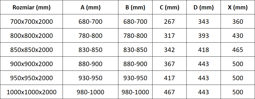 Dušo kabinos, durys ir sienelės yra standartiškai pritaikytos montuoti ant nustatytų matmenų dušo padėklų. Būtent šie matmenys nurodomi gaminio pavadinime arba aprašyme. Tačiau atkreipkite dėmesį, kad faktiniai elementų matmenys gali šiek tiek skirtis nuo vardinių verčių. Planuojant montuoti tiesiai ant grindų, rekomenduojama atidžiai patikrinti išorinius matmenis ir elementų išdėstymą pagal techninį brėžinį.