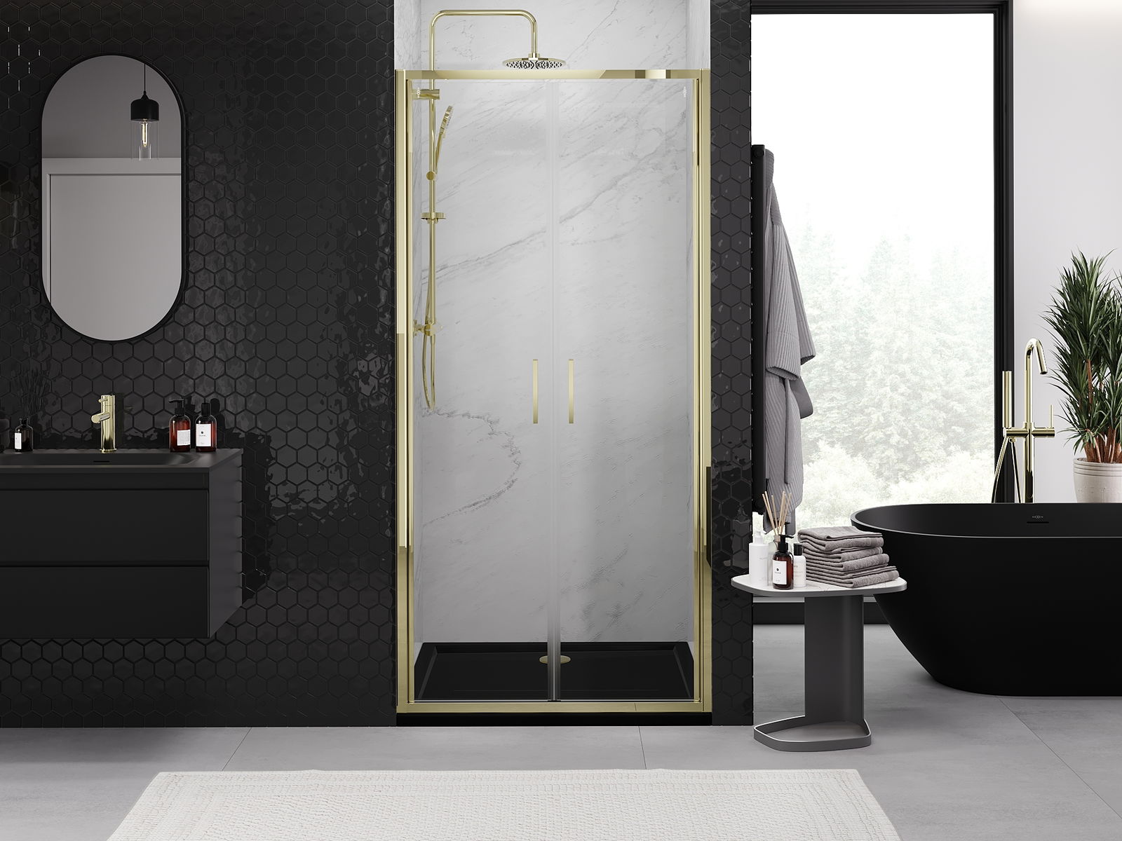 Produktą, atsižvelgiant į poreikius, galima sumontuoti tiek ant dušo padėklo, tiek tiesiogiai ant grindų. Universalus montavimo būdas leidžia pritaikyti produktą įvairių tipų vonios kambariams ir erdvės konfigūracijoms.