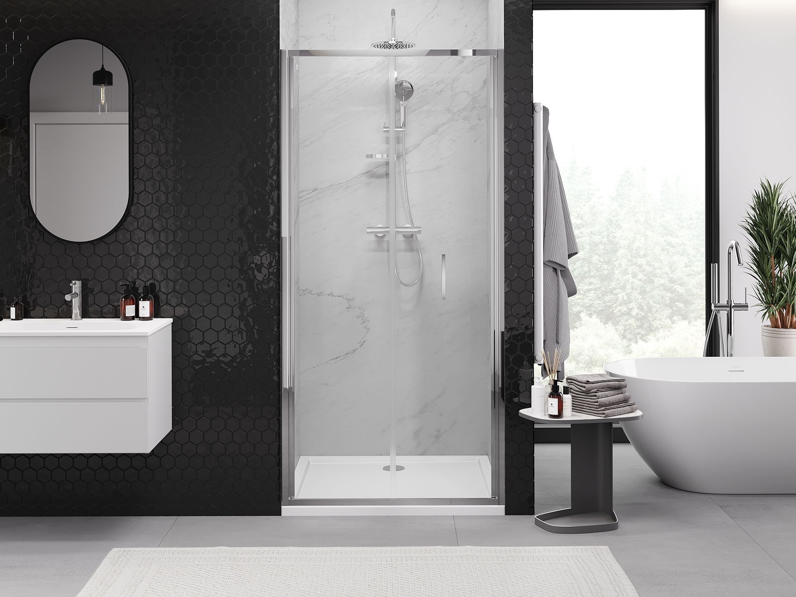 Galimybė sulankstyti duris į vidų, tokia funkcija leidžia sutaupyti vietos, kai nesinaudojate dušu. Tai idealus sprendimas mažesniems vonios kambariams, maksimaliai išnaudojantis turimą plotą.