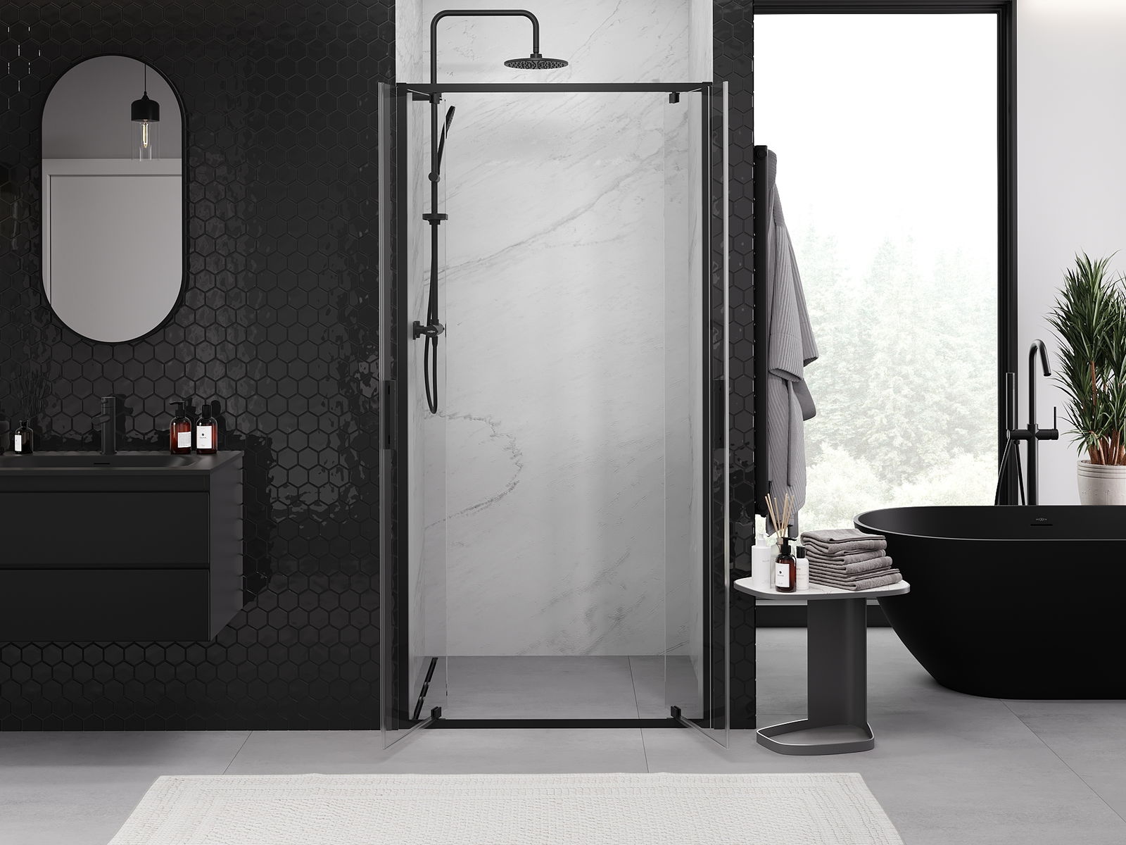 Produktą, atsižvelgiant į poreikius, galima sumontuoti tiek ant dušo padėklo, tiek tiesiogiai ant grindų. Universalus montavimo būdas leidžia pritaikyti produktą įvairių tipų vonios kambariams ir erdvės konfigūracijoms.