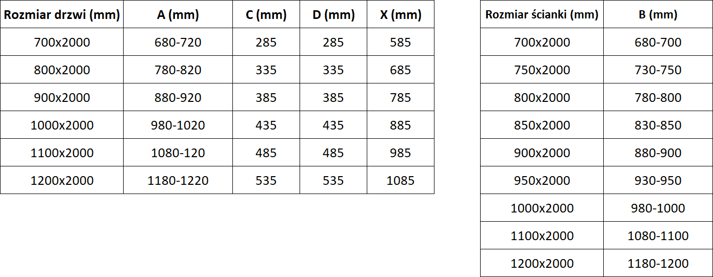 Dydis: 70x110 cm (durys 70 cm, siena 110 cm)