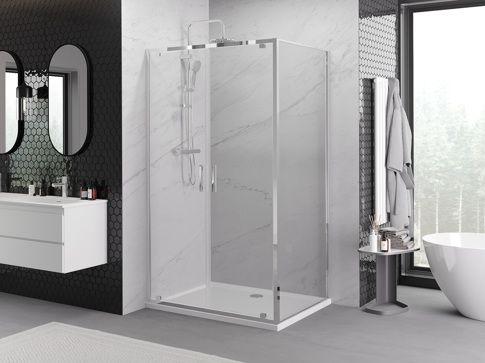 Produktą, atsižvelgiant į poreikius, galima sumontuoti tiek ant dušo padėklo, tiek tiesiogiai ant grindų. Universalus montavimo būdas leidžia pritaikyti produktą įvairių tipų vonios kambariams ir erdvės konfigūracijoms.