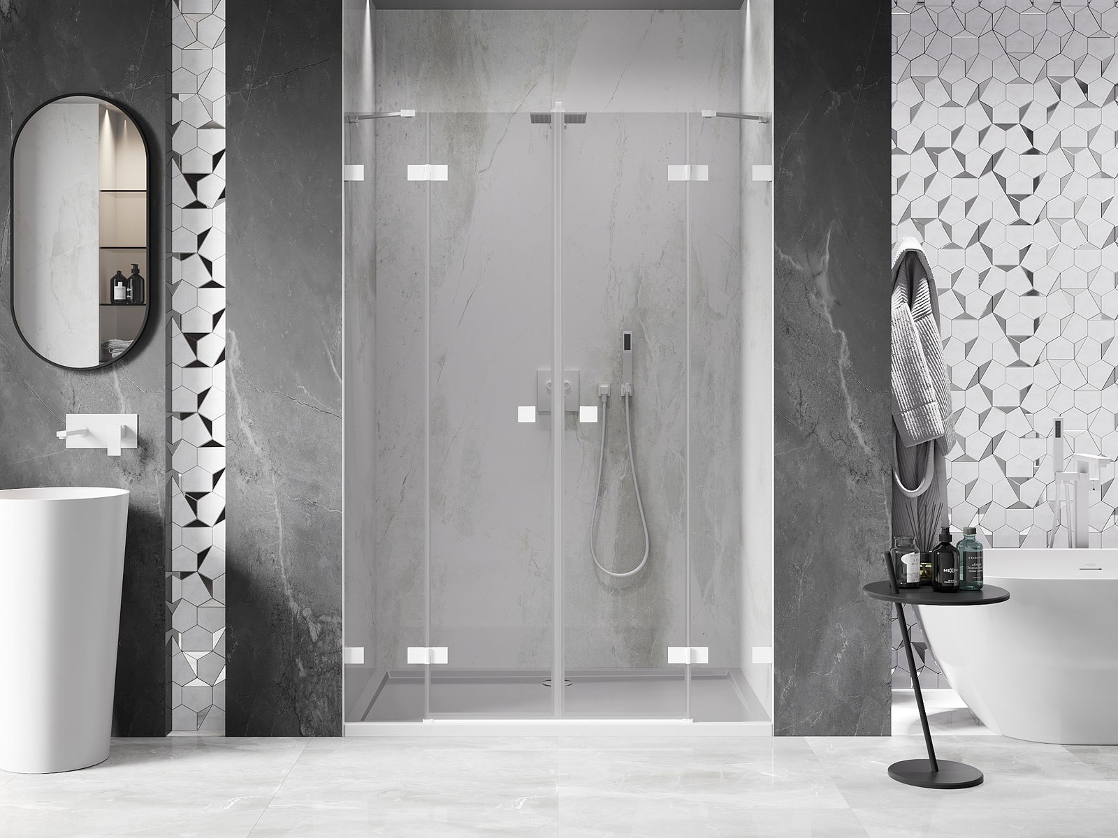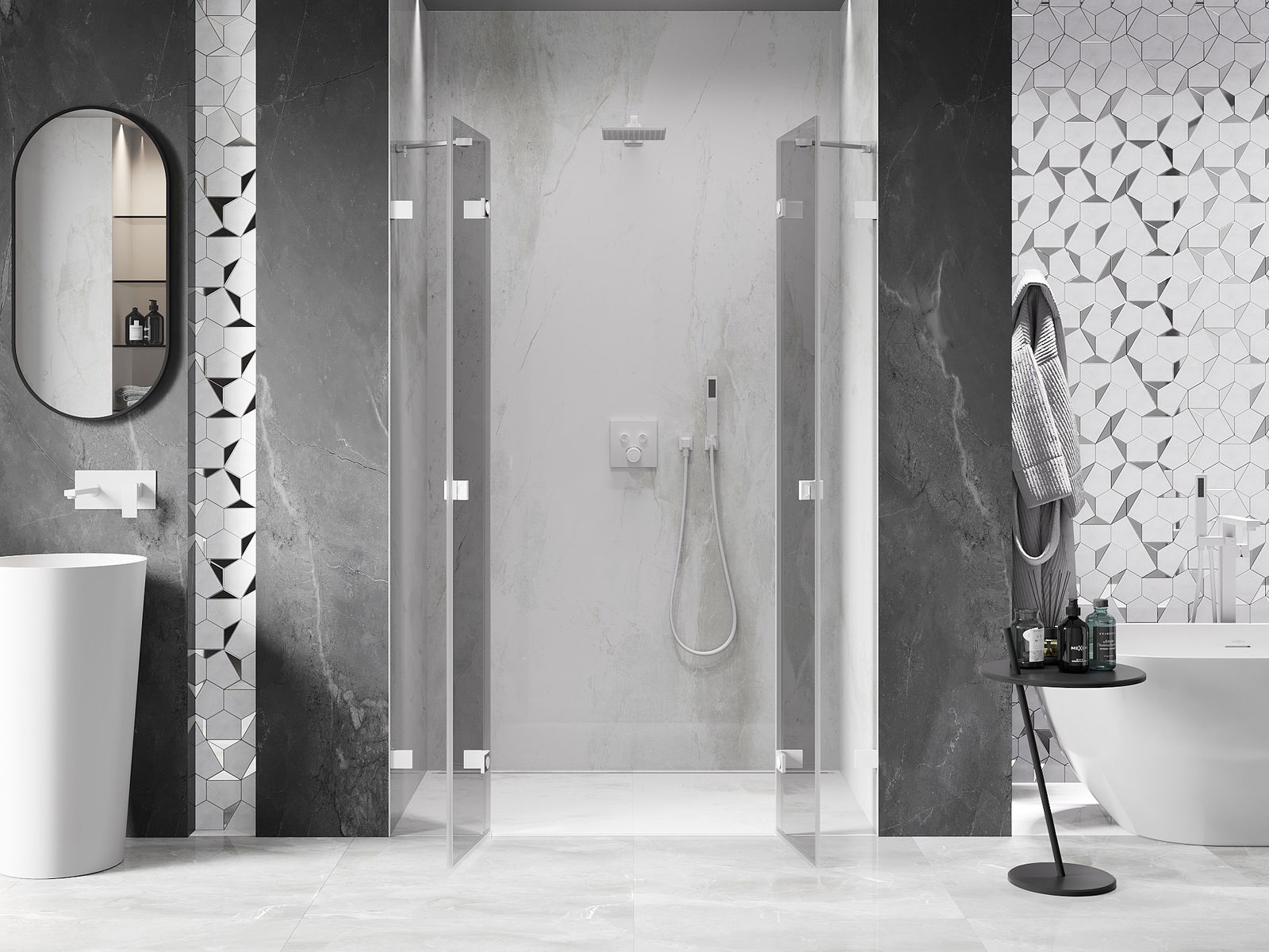 Spaustukai ir vyriai pagaminti iš labai patvaraus žalvario, papildomai sukuriantys lygią stiklo plokštumą. Tai puikus pasirinkimas, jungiantis eleganciją, patvarumą ir šiuolaikinį dizainą. Tokie sprendimai prideda dušo estetikai ir tuo pačiu palengvina švaros palaikymą.
