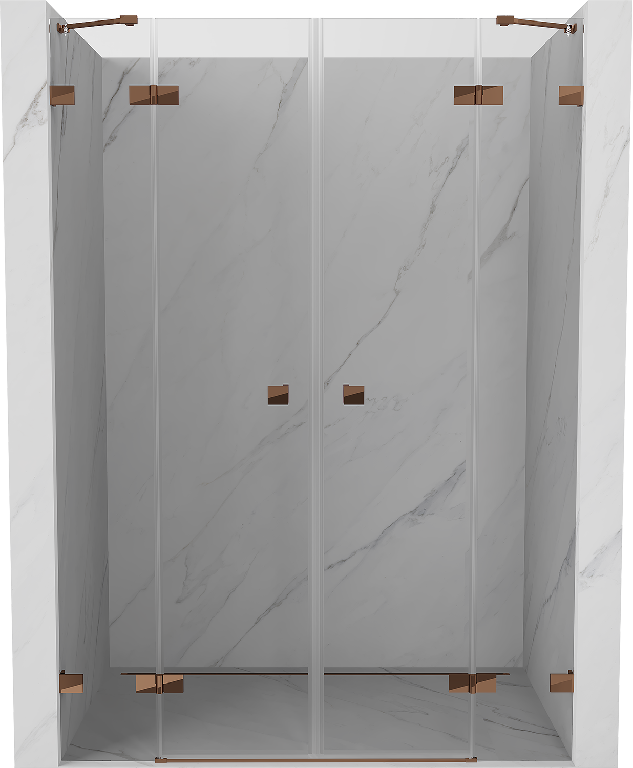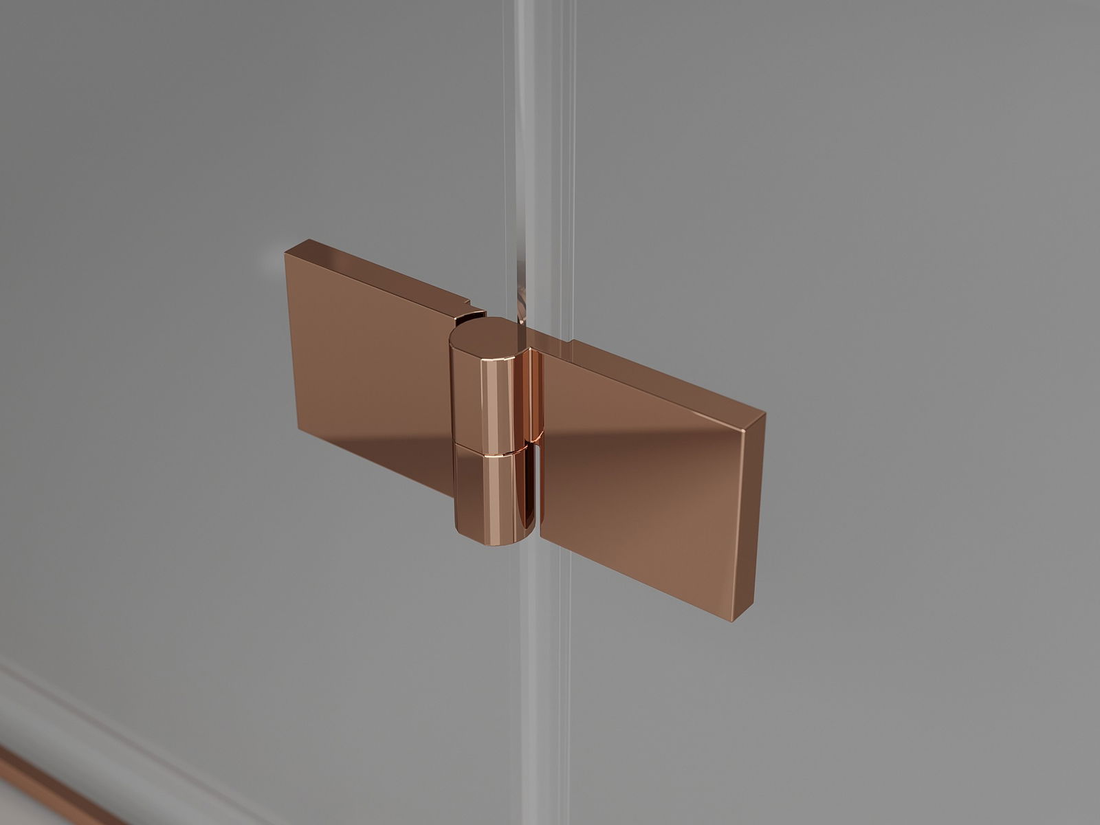 Spaustukai ir vyriai pagaminti iš labai patvaraus žalvario, papildomai sukuriantys lygią stiklo plokštumą. Tai puikus pasirinkimas, jungiantis eleganciją, patvarumą ir šiuolaikinį dizainą. Tokie sprendimai prideda dušo estetikai ir tuo pačiu palengvina švaros palaikymą.
