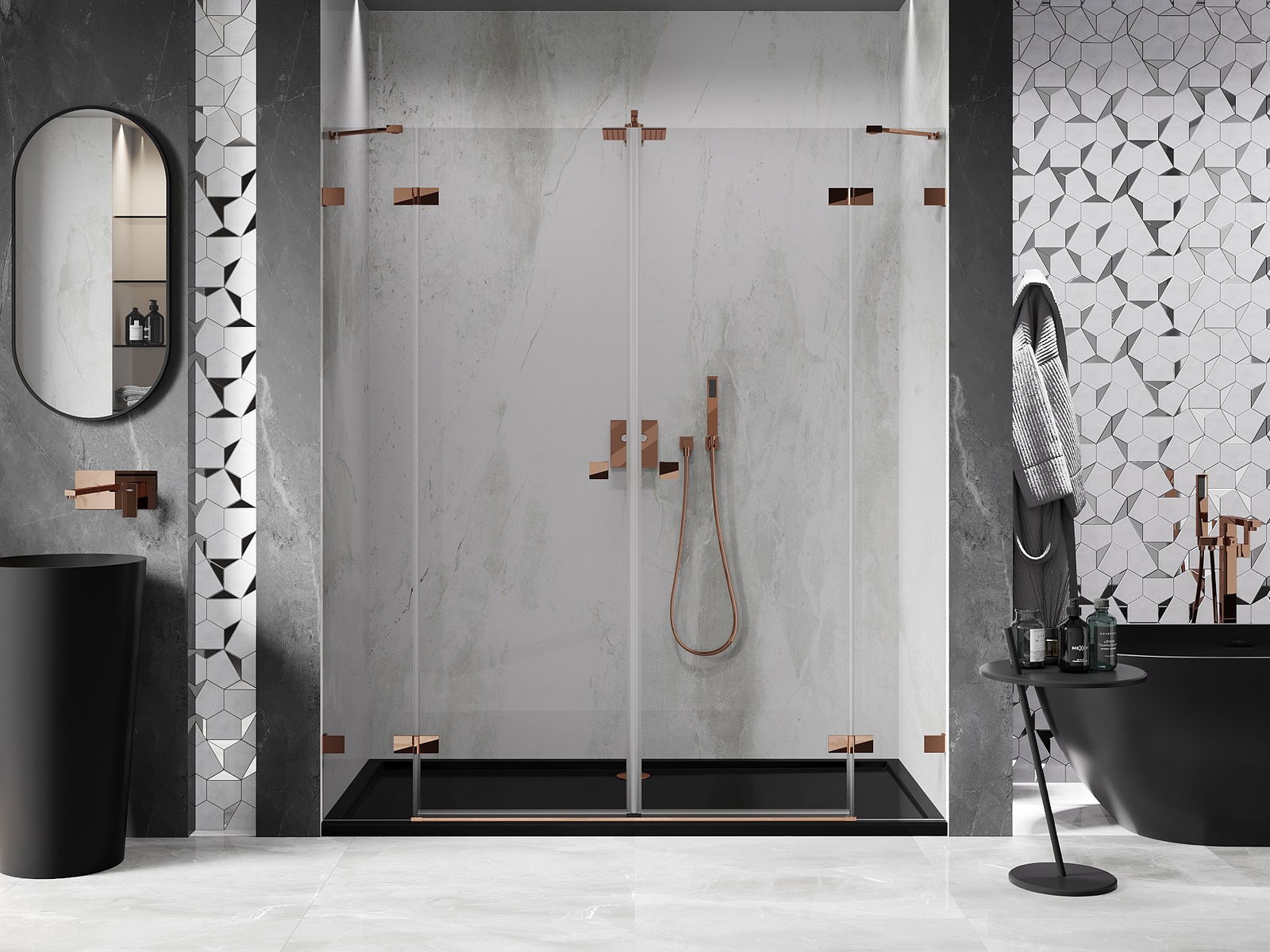Produktą, atsižvelgiant į poreikius, galima sumontuoti tiek ant dušo padėklo, tiek tiesiogiai ant grindų. Universalus montavimo būdas leidžia pritaikyti produktą įvairių tipų vonios kambariams ir erdvės konfigūracijoms.