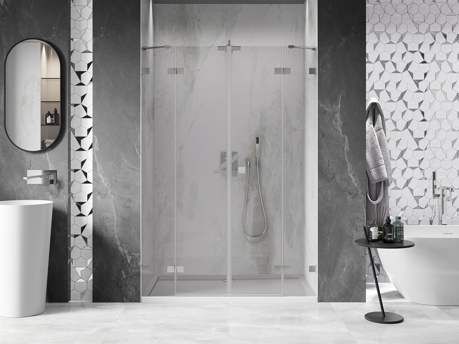 Spaustukai ir vyriai pagaminti iš labai patvaraus žalvario, papildomai sukuriantys lygią stiklo plokštumą. Tai puikus pasirinkimas, jungiantis eleganciją, patvarumą ir šiuolaikinį dizainą. Tokie sprendimai prideda dušo estetikai ir tuo pačiu palengvina švaros palaikymą.