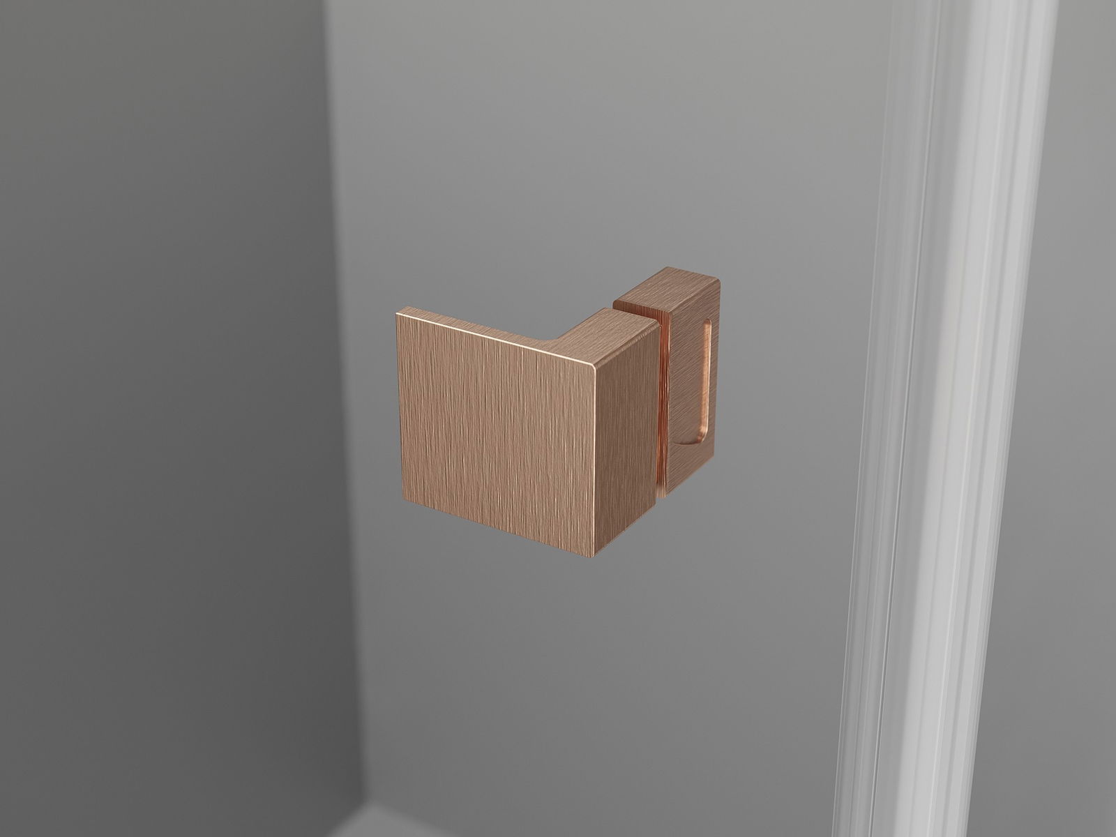 Žalvariniai spaustukai ir vyriai sulygiuoti su stiklo paviršiumi