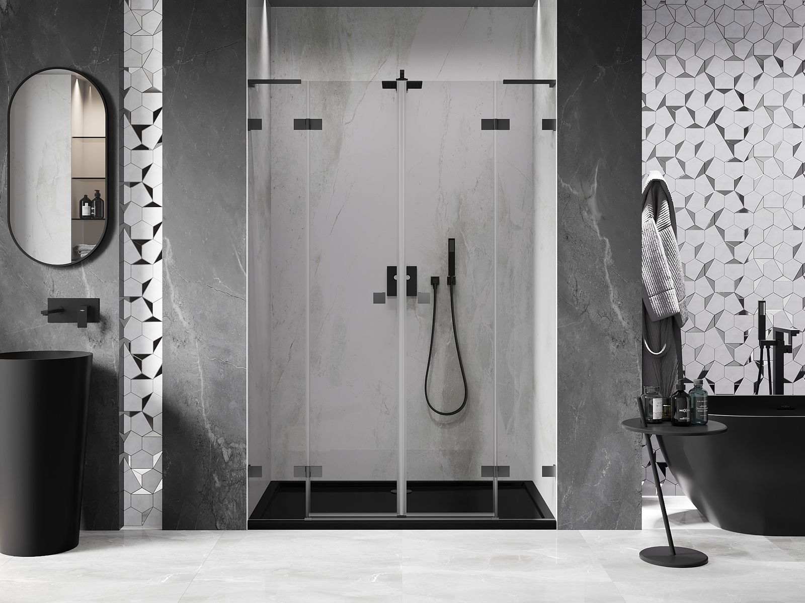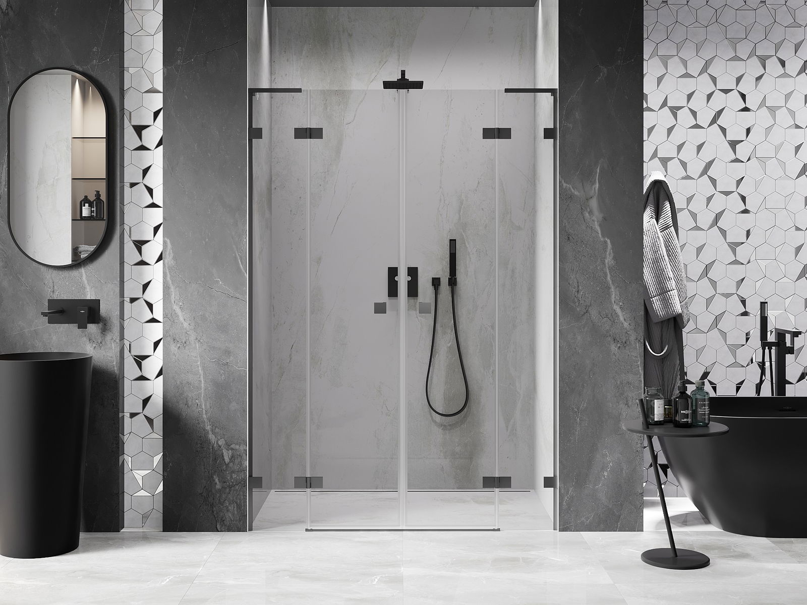 Mexen Rio kvardratinė dušo kabina 90 x 90 cm, permatoma, juoda - 860-090-090-70-00