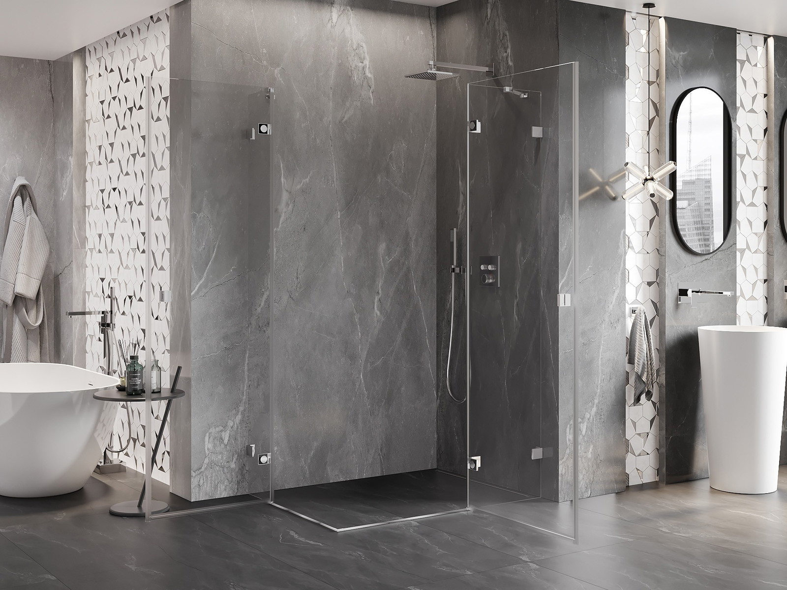 Produktą, atsižvelgiant į poreikius, galima sumontuoti tiek ant dušo padėklo, tiek tiesiogiai ant grindų. Universalus montavimo būdas leidžia pritaikyti produktą įvairių tipų vonios kambariams ir erdvės konfigūracijoms.