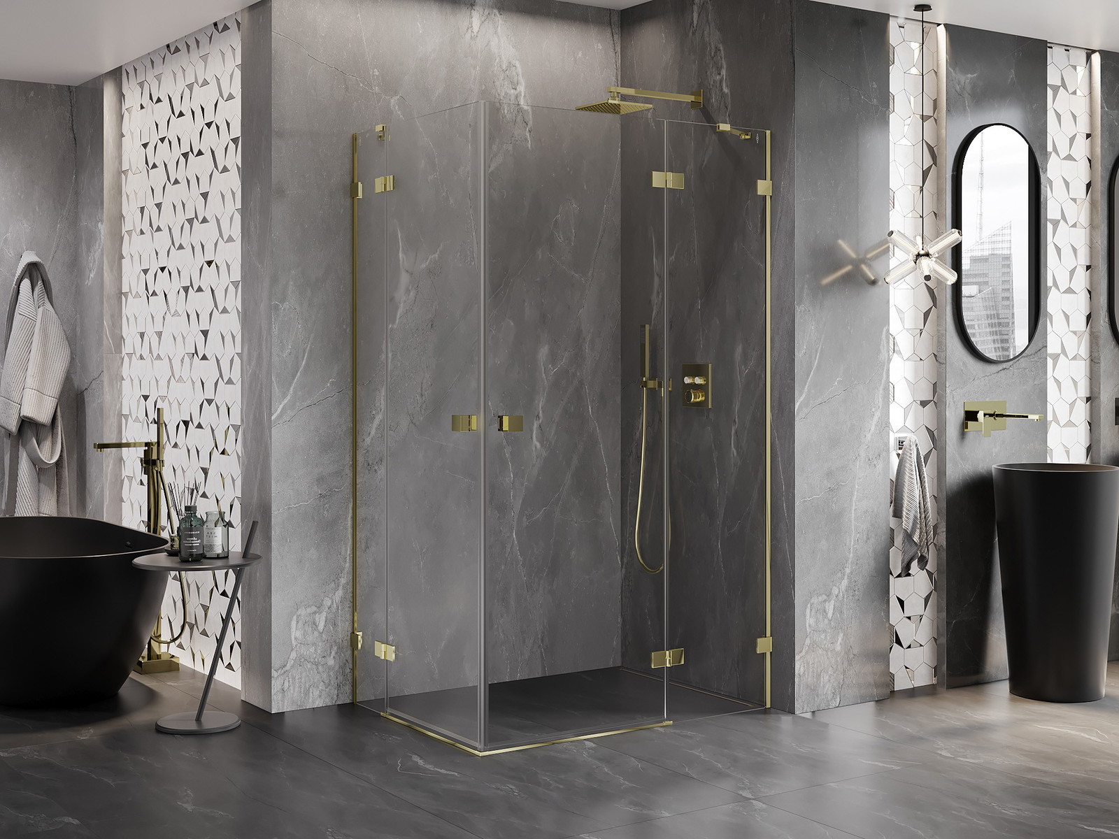 Mexen Lunar Duo dešinė pakreipiama dušo kabina 120 x 95 cm, skaidri, auksinė - 834-120P-095L-50-00