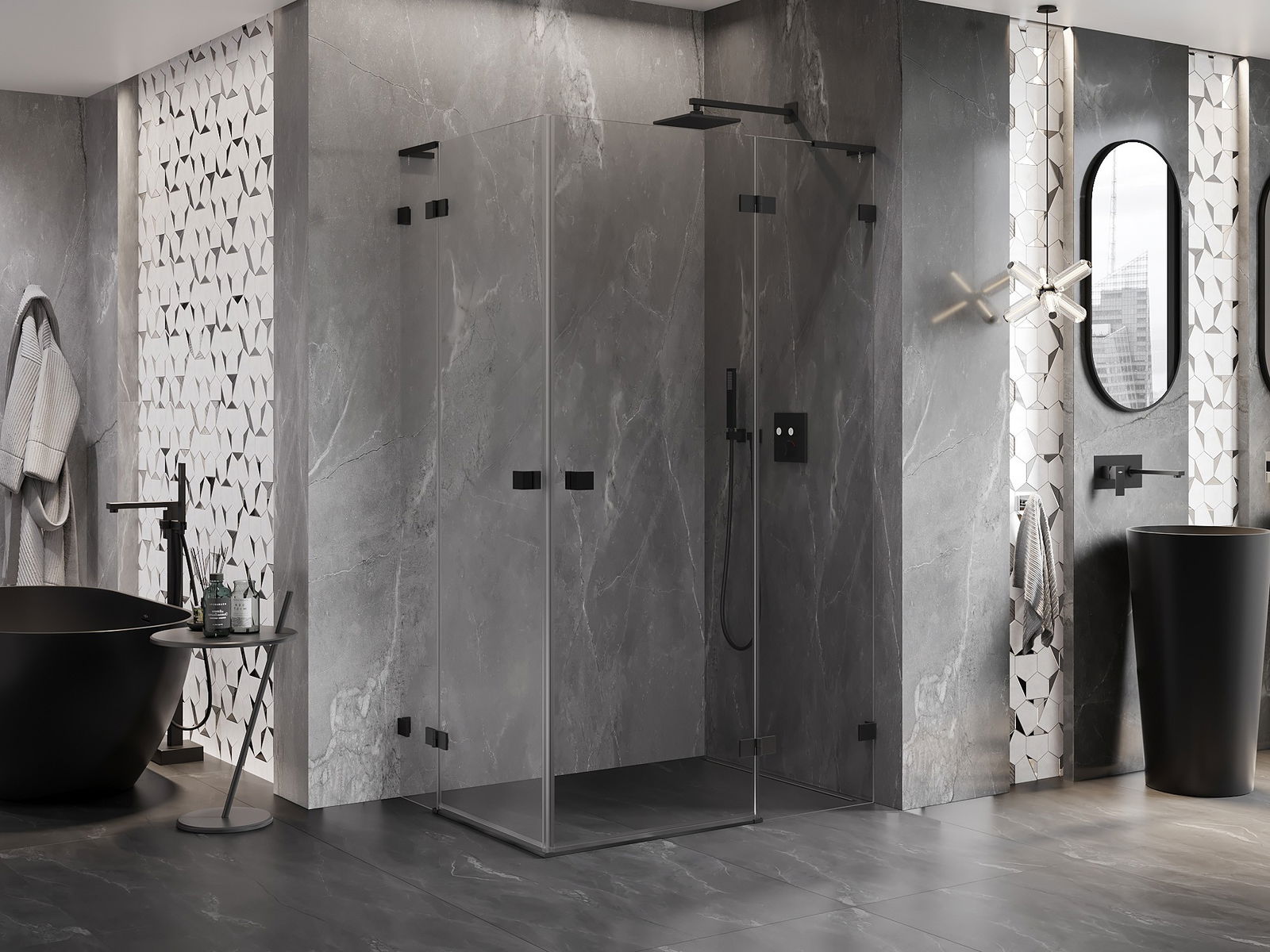 Mexen Rio kvardratinė dušo kabina 90 x 90 cm, permatoma, juoda - 860-090-090-70-00