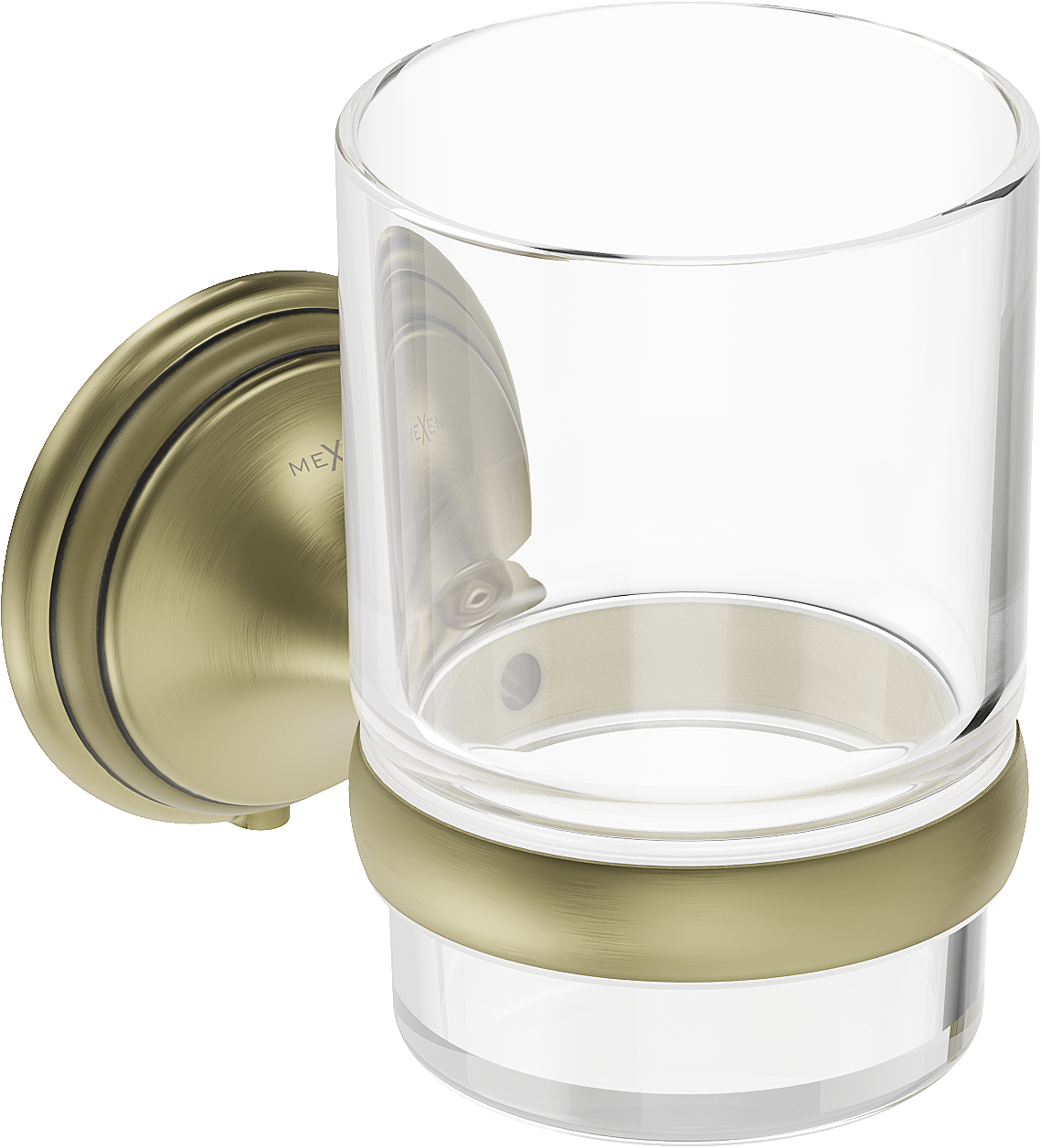 Mexen Lusso puodelis dantų šepetėliams yra elegantiškas ir funkcionalus vonios aksesuaras, kuris puikiai derina stilių ir praktiškumą. Pagamintas iš tvirtų medžiagų, tokių kaip metalas ir stiklas, garantuoja patvarumą ir estetiką. Apdaila antikine bronza suteikia jam klasikinę ir prabangią išvaizdą. Dėl kompaktiškų matmenų – 7 cm pločio, 10 cm aukščio ir 11 cm atstumo nuo sienos – puikiai tinka bet kuriai voniai, taupydamas vietą ir pridėdamas elegancijos.