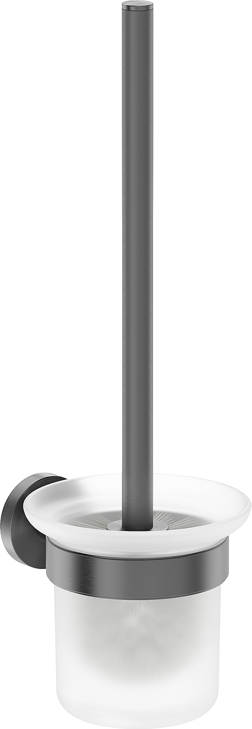 Mexen Ovio tualeto šepetys, šlifuota tamsiai pilka spalva yra stilingas ir funkcionalus aksesuaras jūsų vonios kambariui. Pagamintas iš metalo ir stiklo, užtikrina patvarumą ir eleganciją. Jo apdaila tamsiai pilkos spalvos šlifuotame paviršiuje suteikia modernumo ir charakterio. Su 11,5 cm pločiu ir 37,2 cm aukščiu puikiai dera prie erdvės, išlaikant kompaktiškus matmenis. Atstumas nuo sienos yra 14,5 cm, kas užtikrina lengvą prieigą ir patogumą naudoti.