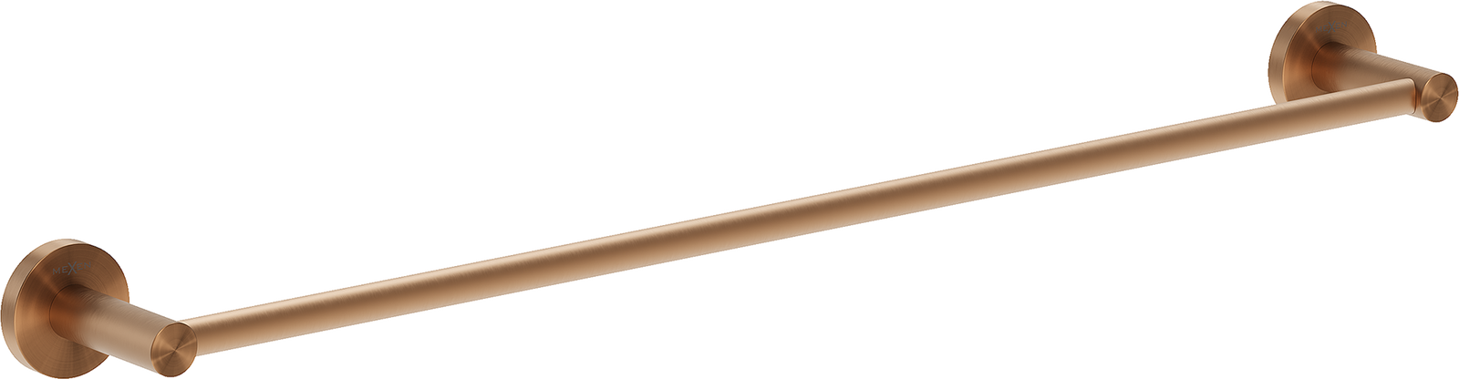 Mexen Ovio rankšluosčių laikiklis yra puikus pasirinkimas žmonėms, vertinantiems eleganciją ir funkcionalumą savo vonios kambaryje. Pagamintas iš aukštos kokybės metalo, garantuoja ilgaamžiškumą ir patikimumą. Jo ypatinga šlifuotos vario apdaila suteikia interjerui prabangos įvaizdį. 65 cm plotis užtikrina pakankamai vietos rankšluosčiams, o 5 cm aukštis ir 7,5 cm atstumas nuo sienos leidžia produktui išlikti diskretišku, tačiau efektyviu dekoro elementu.
