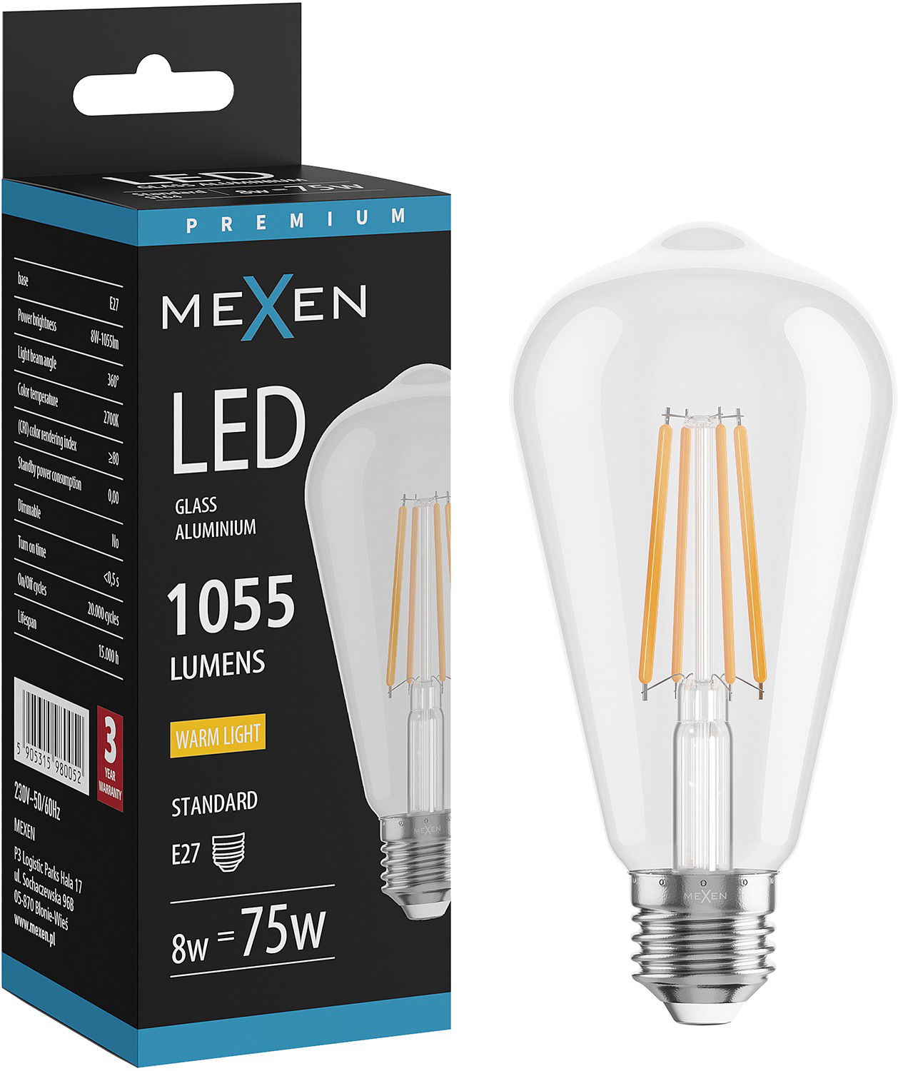Mexen Vintis LED gijų lemputė E27, ST64, 8W, Šilta - 2700K, 1055 lm, skaidri - L152-E27-0827-00