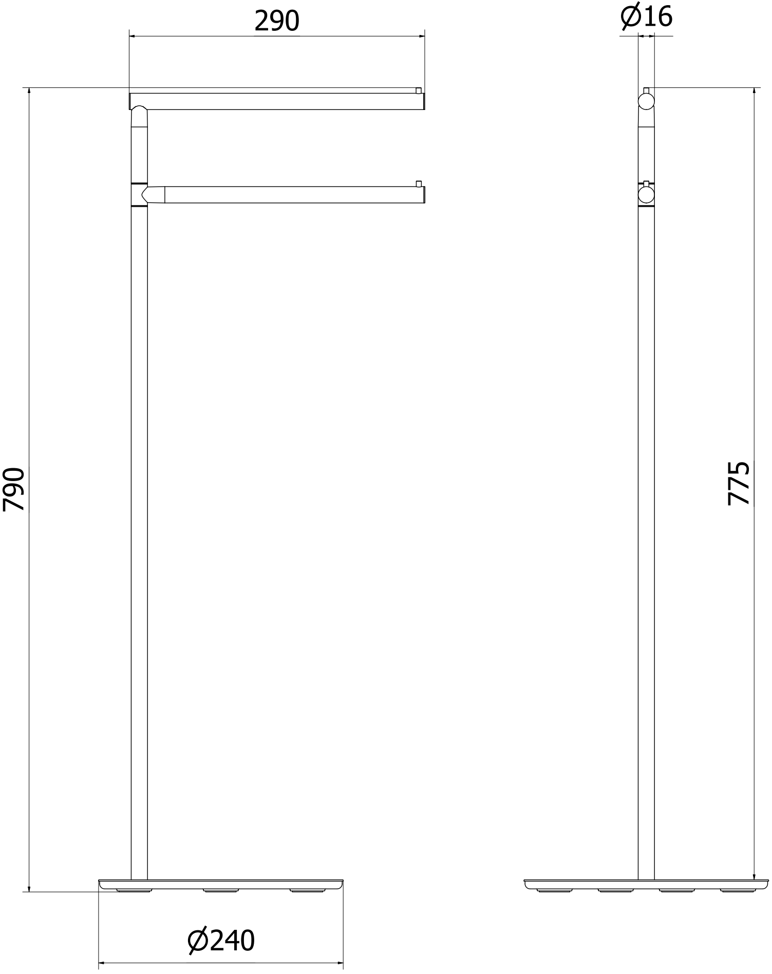 2 rankšluosčių laikikliai skirtingame aukštyje