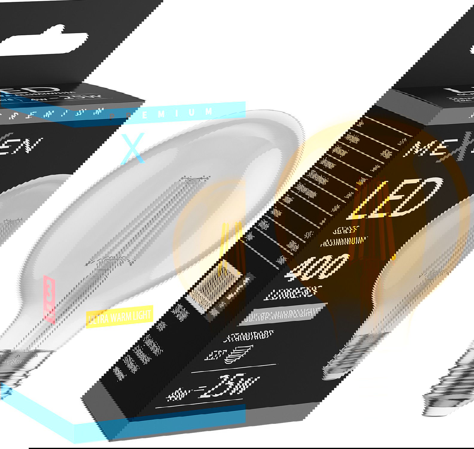Mexen Vintis LED gijų lemputė E27, G80, 4W, Šilta - 2700K, 400 lm, gintarinė - L155-E27-0427-50