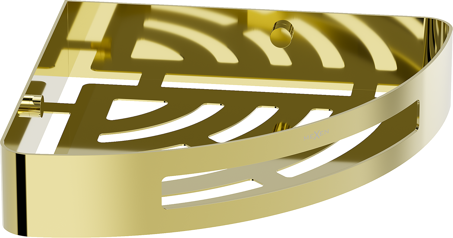 Mexen Laxo-C kampinis vonios krepšelis yra puikus sprendimas kiekvienai vonios kambariui. Pagamintas iš nerūdijančio plieno AISI 304, užtikrina patvarumą ir atsparumą korozijai bei matavimui. Jo auksinė apdaila suteikia interjerui elegancijos. Su pločiu 21 x 21 cm ir aukščiu 4,5 cm idealiai tinka kampui, taupydamas vietą. Lentyna su angomis leidžia greitai nuvesti vandenį, kas garantuoja higieną ir ilgalaikį naudojimą.