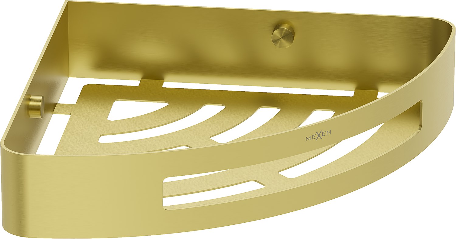 Mexen Laxo-C yra elegantiškas kampinis vonios krepšys su šlifuota auksine apdaila, kuris puikiai derės jūsų vonios kambaryje. Pagamintas iš aukštos kokybės nerūdijančio plieno AISI 304, užtikrina ilgaamžiškumą ir atsparumą matinimui bei korozijai. Matmenys 21 x 21 cm ir aukštis 4,5 cm daro jį funkcionaliu ir diskretišku. Specialiai suprojektuotos lentynoje esančios angos leidžia greitai nutekėti vandeniui, todėl ji išlieka sausa ir švari. Puikus pasirinkimas stilingam vonios kambariui.