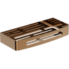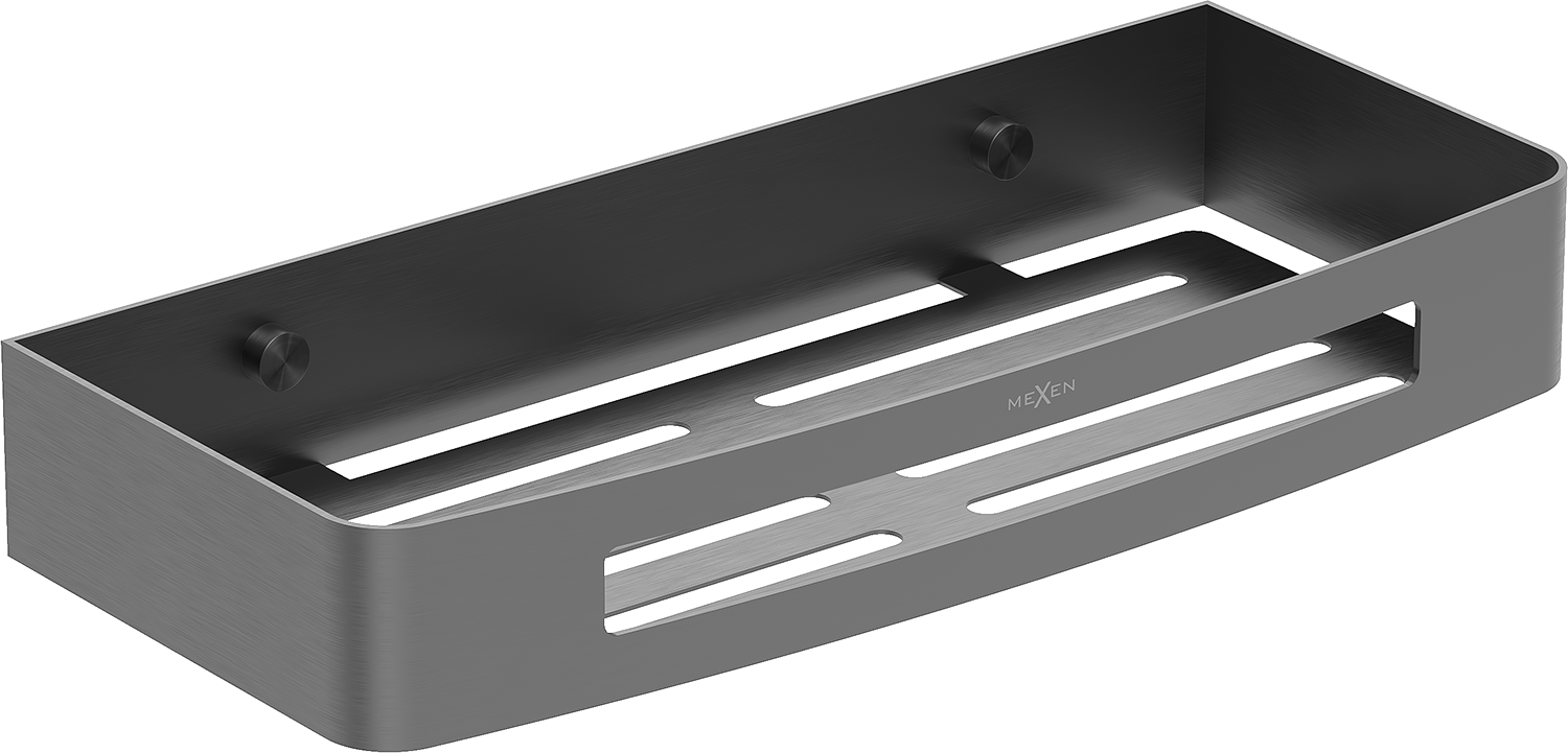 Mexen Laxo-L vonios krepšys derina šiuolaikinį dizainą su funkcionalumu, puikiai tinka bet kuriai voniai. Pagamintas iš aukštos kokybės nerūdijančio plieno AISI 304, garantuoja ilgaamžiškumą ir atsparumą blukimui bei korozijai. Jo šlifuota ginklų pilka apdaila suteikia elegancijos, o 30 cm plotis ir 4,5 cm aukštis užtikrina patogų laikymą. Lentynėlėje yra skylės, leidžiančios greitai nutekėti vandeniui, kas papildomai padeda išlaikyti higieną.