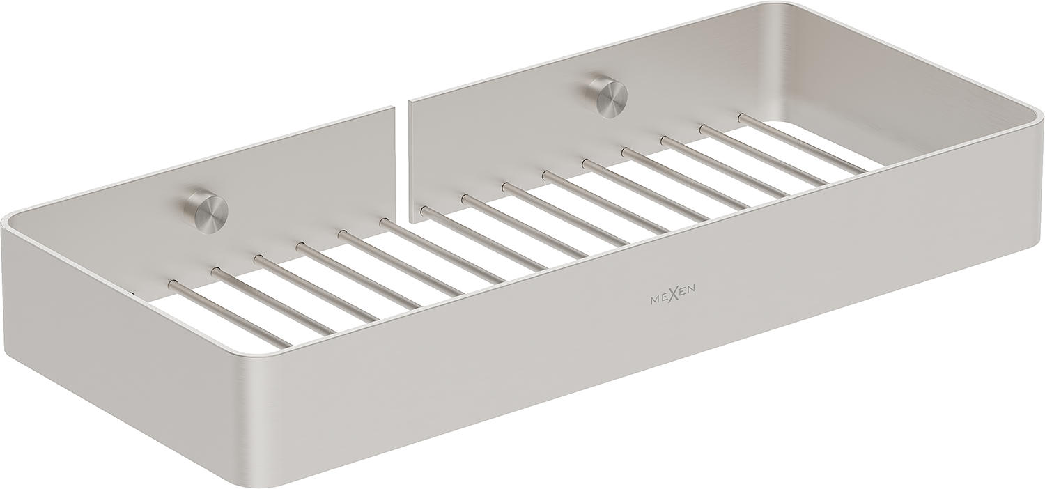 Mexen Evos-L yra elegantiškas vonios krepšys, pagamintas iš aukštos kokybės nerūdijančio plieno AISI 304. Jo apdaila su šepečiuotu nikeliu suteikia interjerui šiuolaikišką išvaizdą. Dėl 29,5 cm pločio ir 4 cm aukščio jis puikiai tinka jūsų vonios kambariui. Lentynėlė yra funkcionali, nes turi angas, leidžiančias greitą vandens nutekėjimą, ir pasižymi atsparumu matinimui ir korozijai. Puikus pasirinkimas tvarioms ir elegantiškoms kompozicijoms.