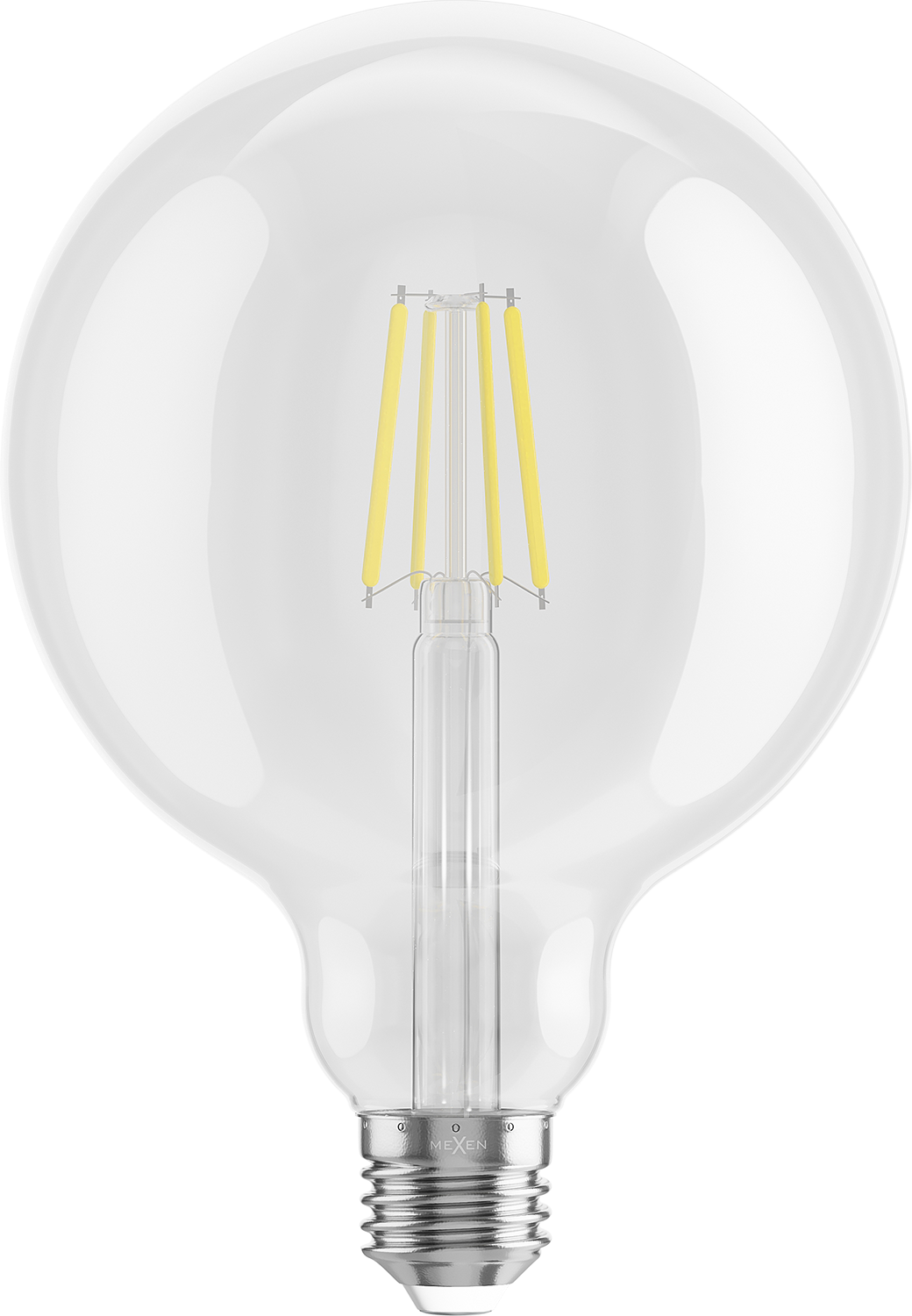 Mexen Vintis LED siūlelio lemputė E27, G125, 6W, Neutralus - 4000K, 720 lm, skaidrus - L158-E27-0640-00