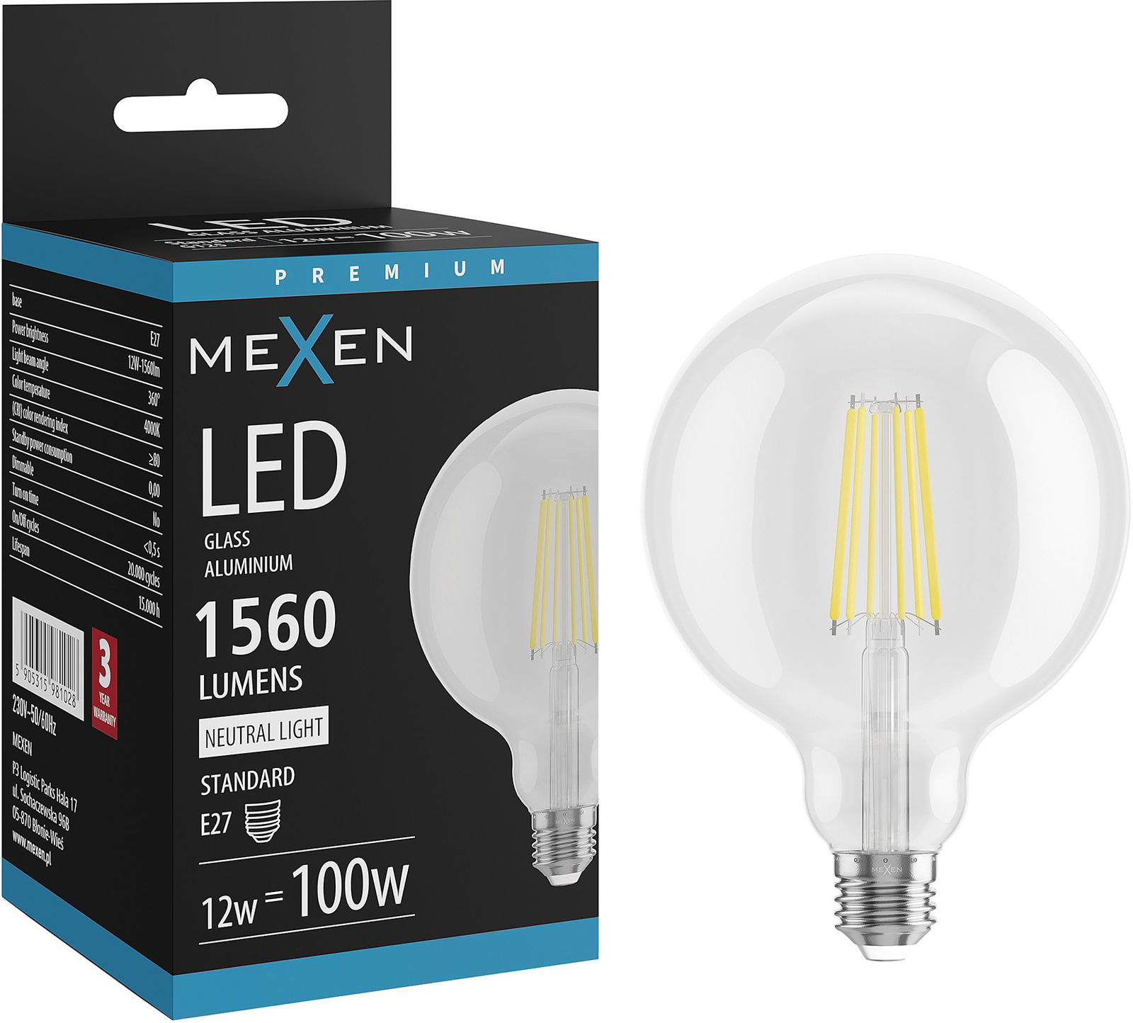 Mexen Vintis LED gijų lemputė E27, G125, 12W, Neutrinė - 4000K, 1560 lm, skaidri - L158-E27-1240-00