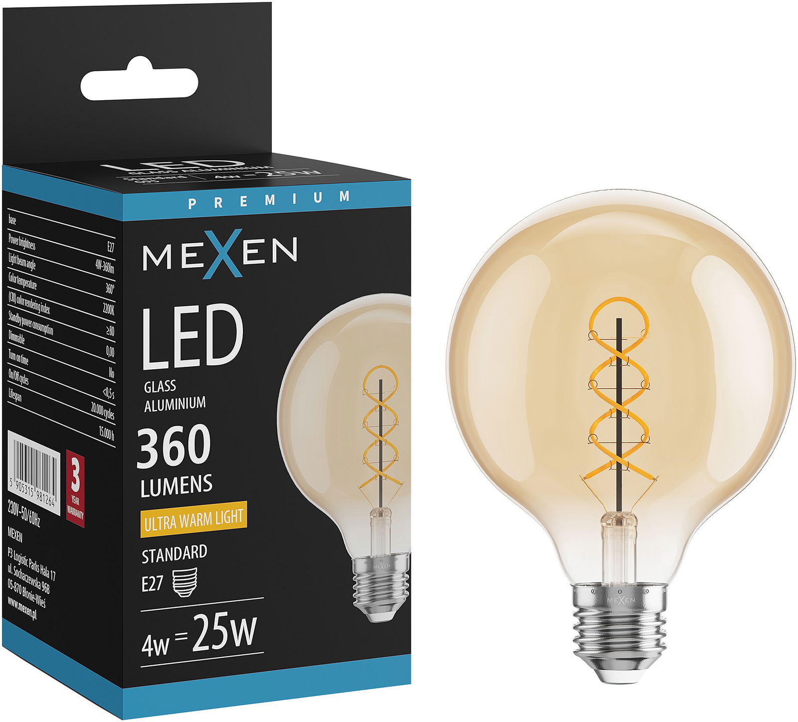 Mexen Vintis LED lemputė filamentas spiralė E27, G95, 4W, Šilta - 2200K, 360 lm, gintaro - L167-E27-0422-50