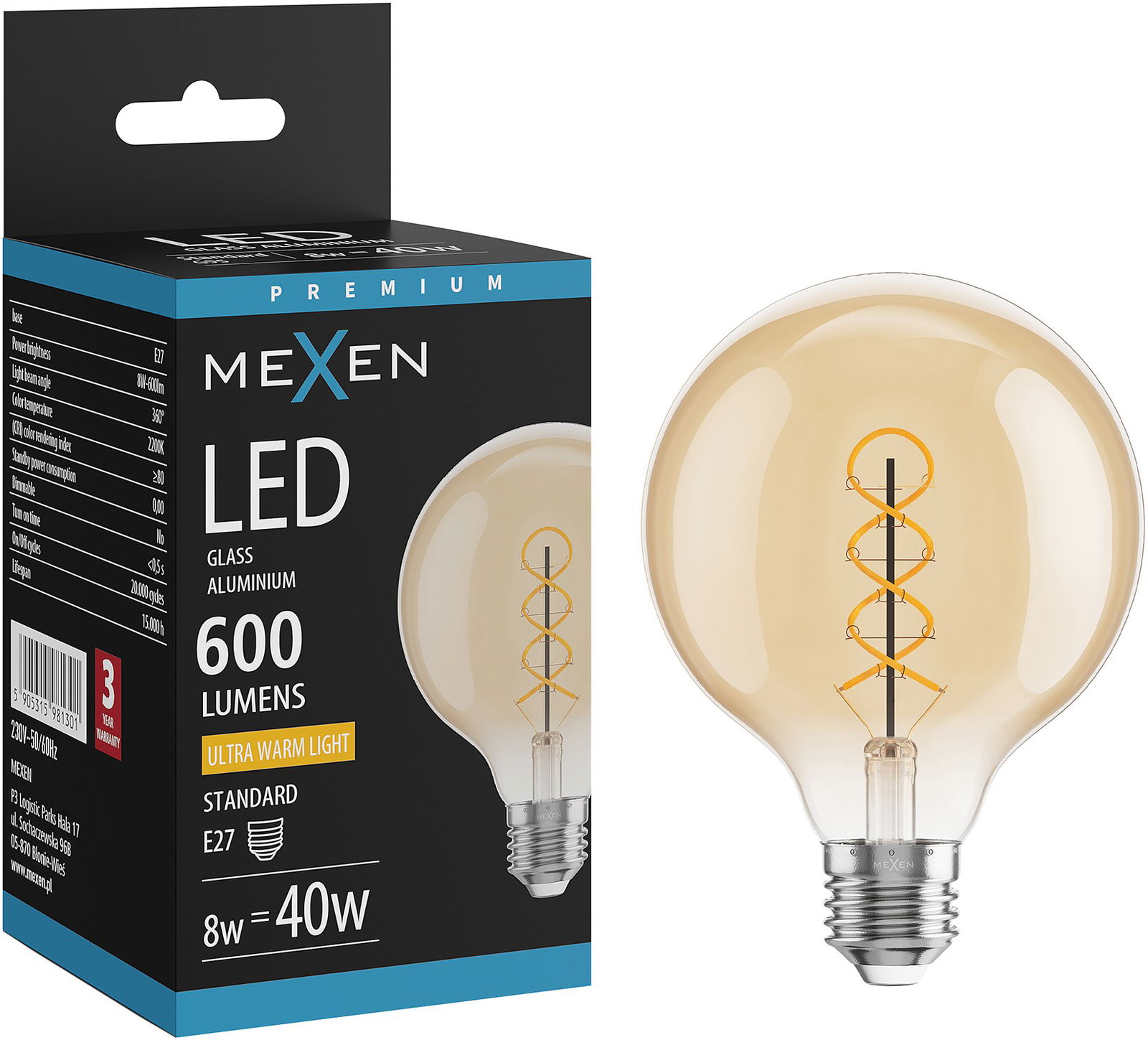 Mexen Vintis LED kaitinimo spiralė lemputė E27, G95, 8W, Šilta - 2200K, 600 lm, gintarinė - L167-E27-0822-50