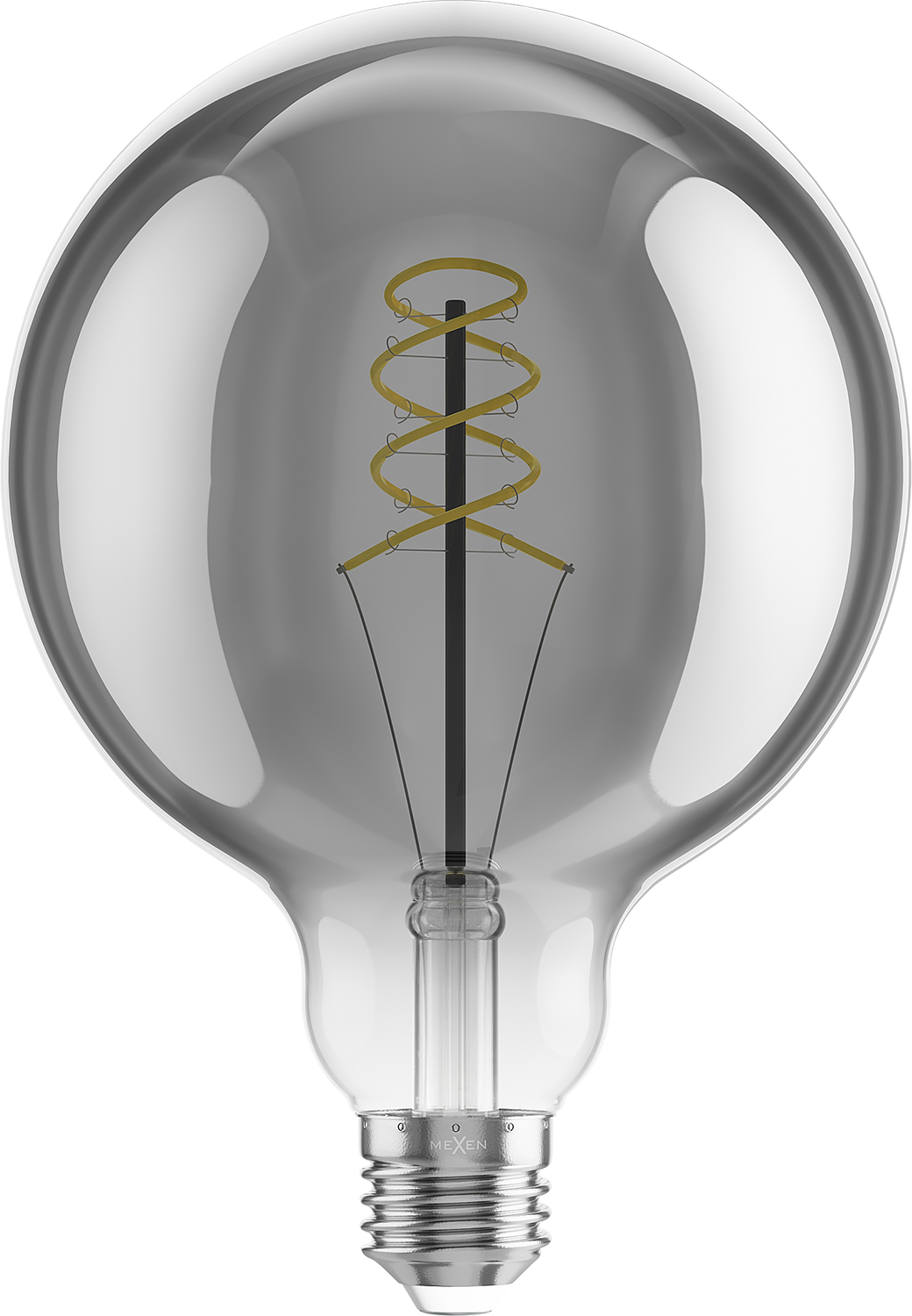 Mexen Vintis LED spiralės spiralinė lemputė E27, G125, 6W, Šilta - 2200K, 350 lm, dūminė - L168-E27-0622-70